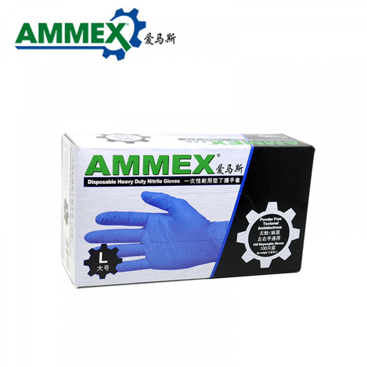 AMMEX/爱马斯 一次性蓝色耐用型手套丁晴手套实验室家务耐油耐酸碱HD