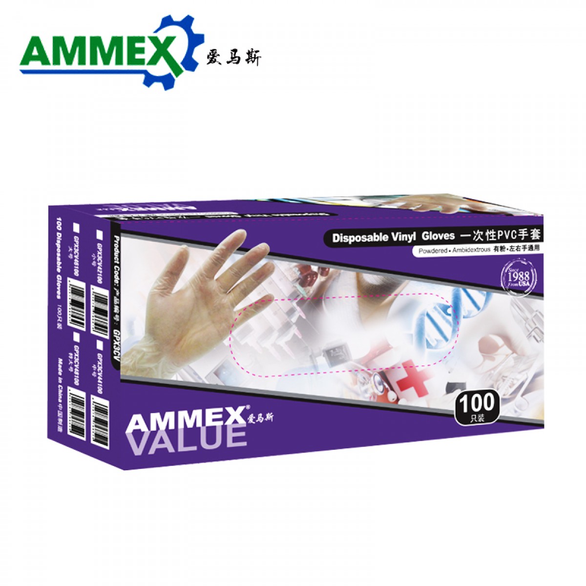 AMMEX/爱马斯 一次性医用pvc橡胶检查手套卫生加工有粉手套 GPX3CV
