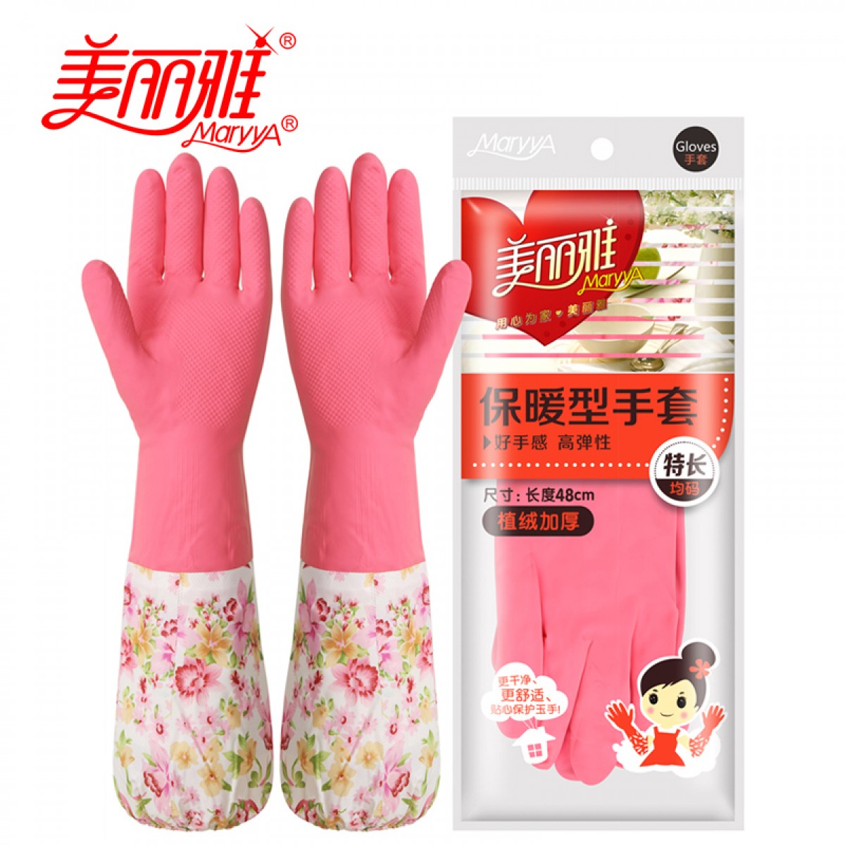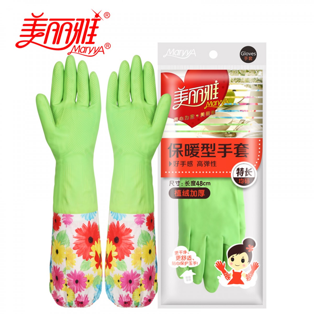 商品名称:美丽雅 特长保暖手套 乳胶绒里手套 特长家务手套 保暖洗衣手套HC017412