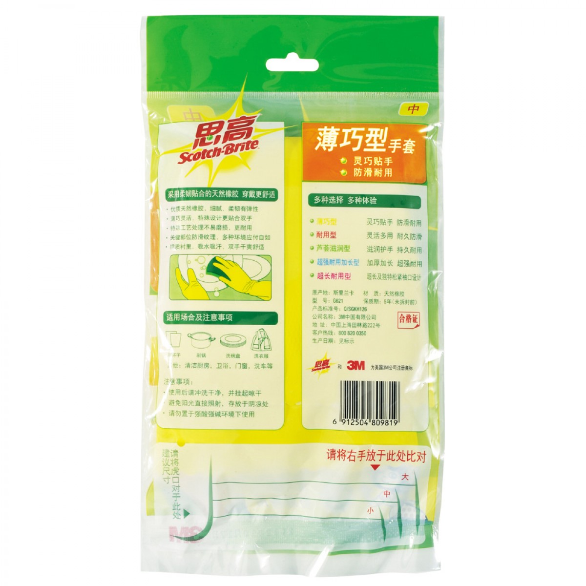 3M 薄巧天然橡胶手套 洗衣洗碗家用手套1双装 橡胶 xy003850282