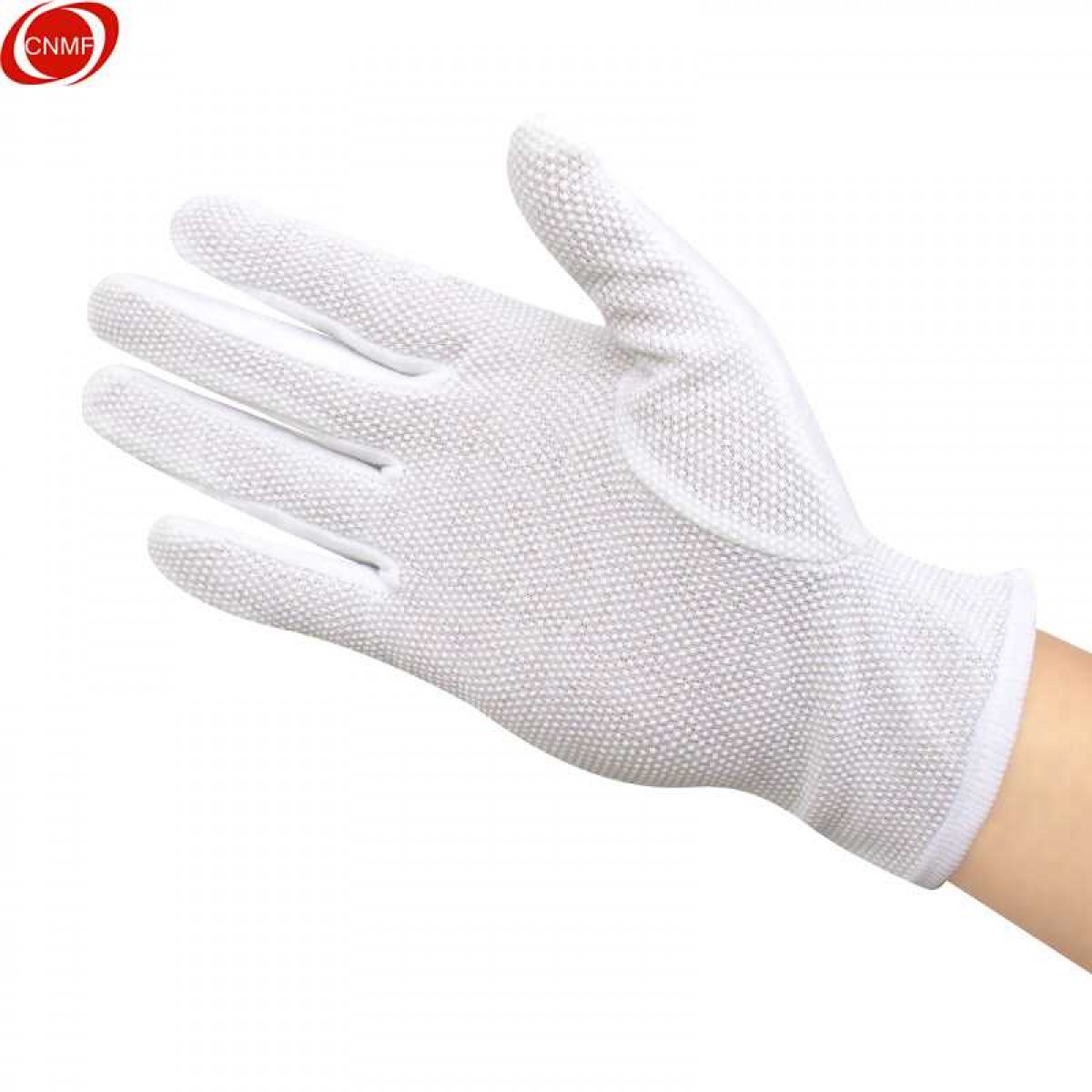 商品名称:谋福 白色点胶防滑手套 棉毛作业点塑劳保 颗粒胶点礼仪司机工作