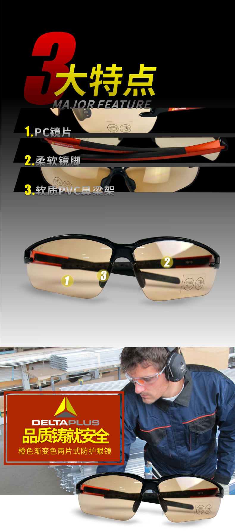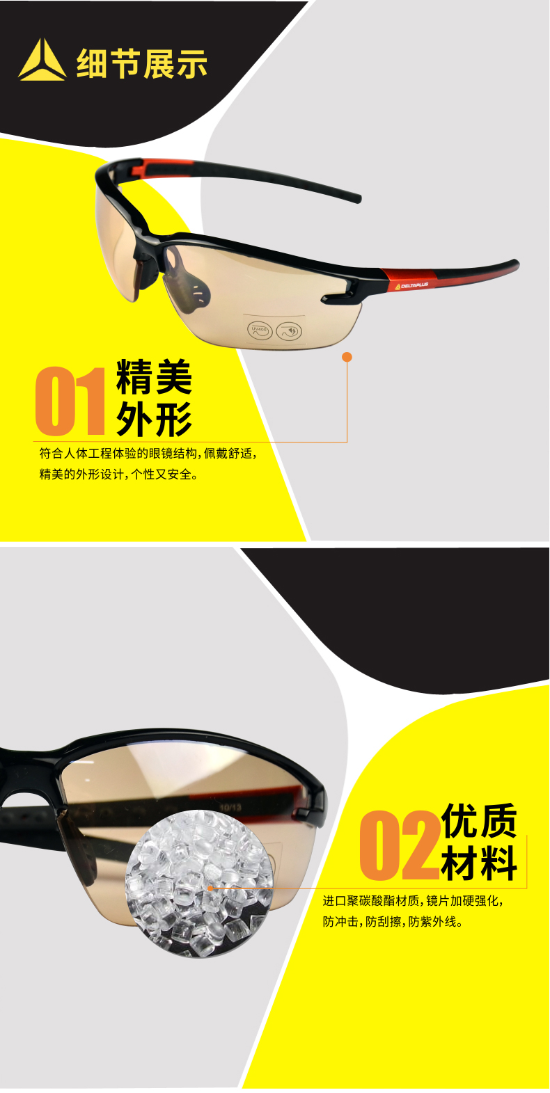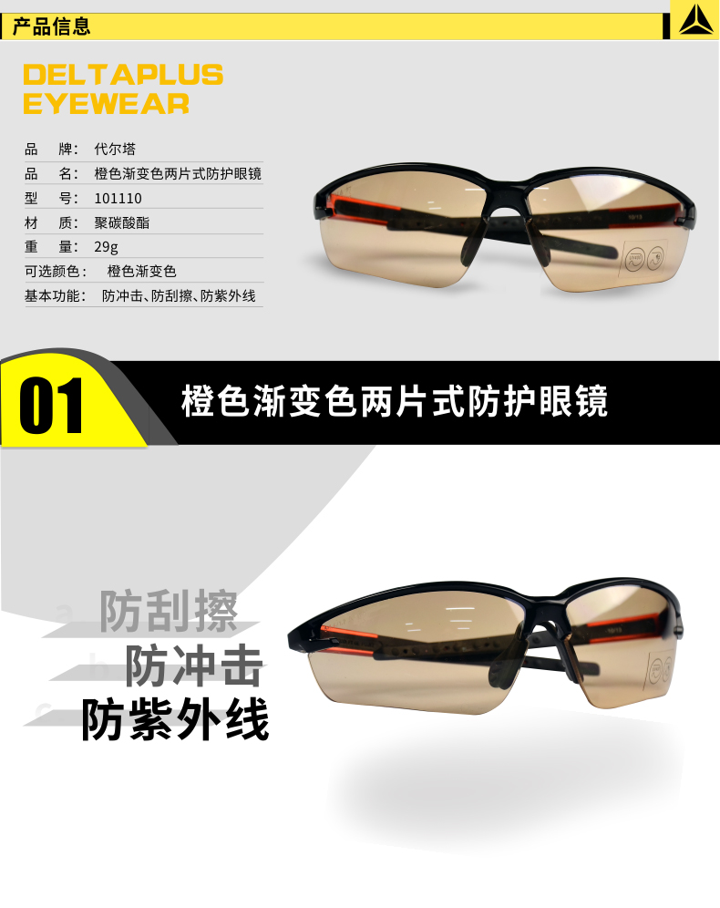 商品名称:代尔塔 101110 防冲击 防刮擦 防护 眼镜 护目镜 PC 防紫外镜片