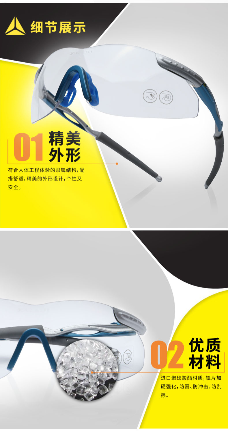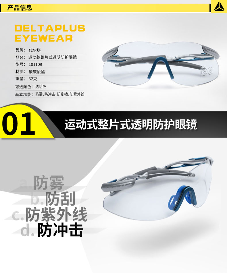商品名称:代尔塔 防尘劳保护目镜运动骑行眼镜透明防护眼镜防雾防冲击防刮擦 101109