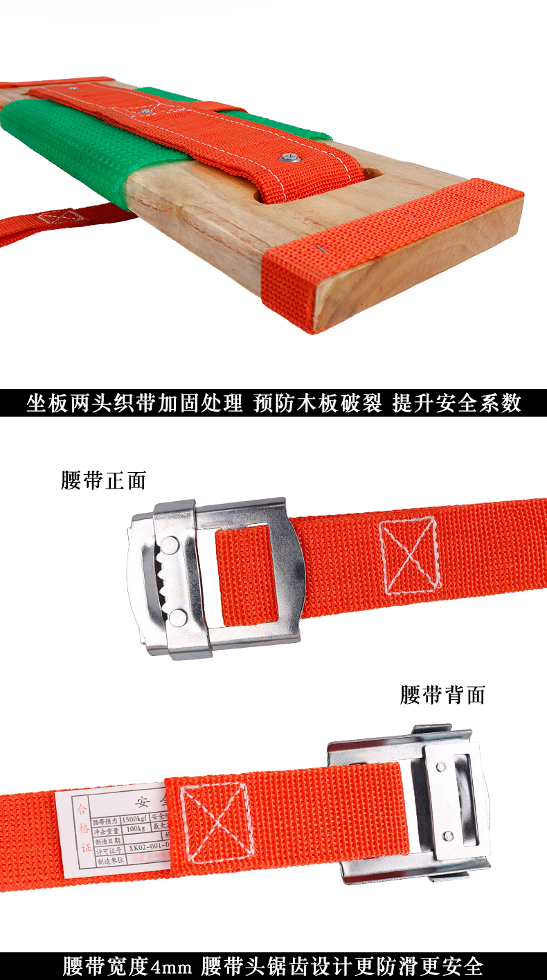 商品名称:援邦 高空作业安全绳木座板吊板防坠落滑板秋千坐板户外安全带外墙清洗 YB-GKZY-ZB