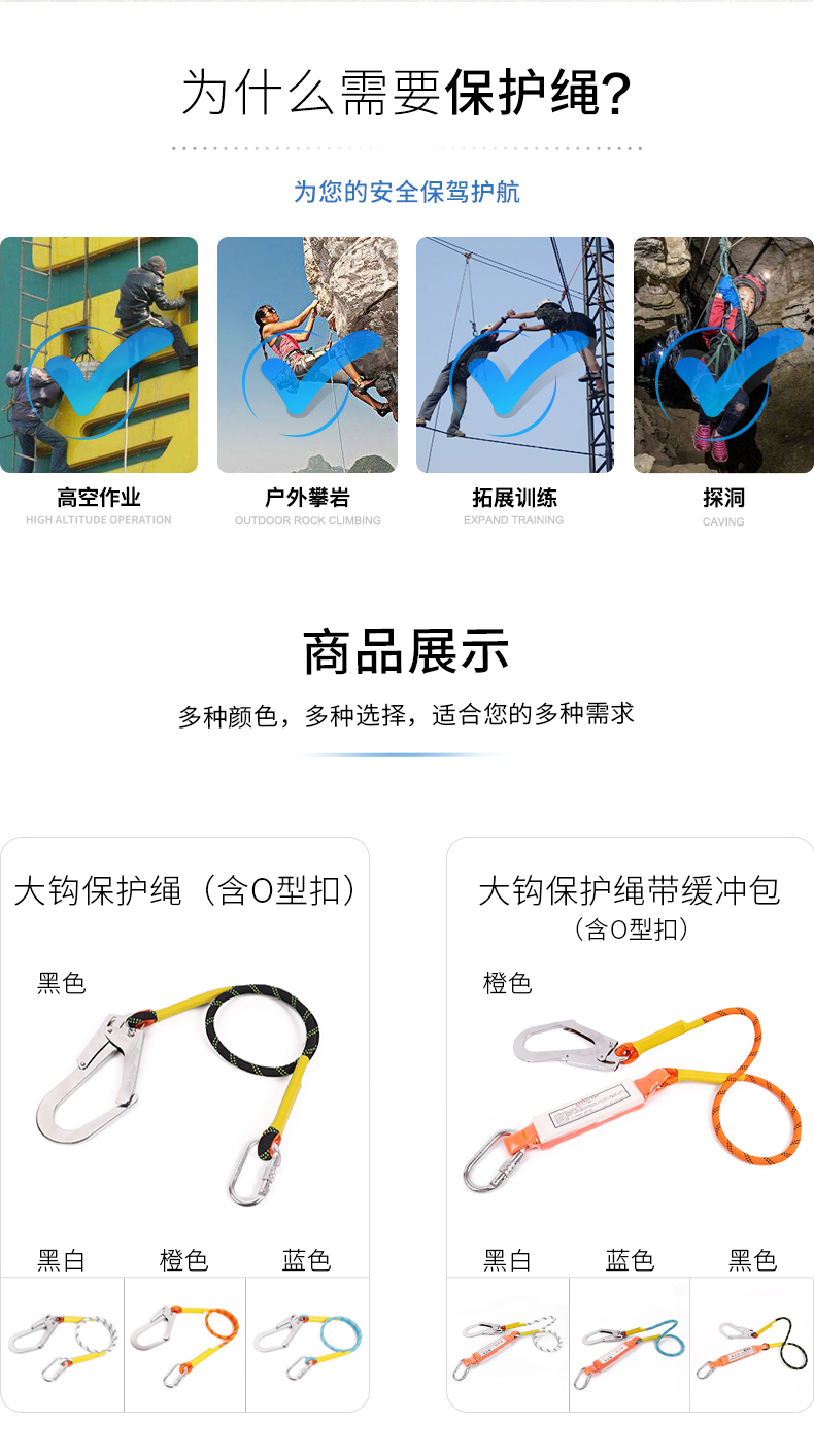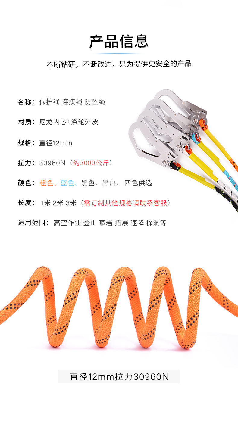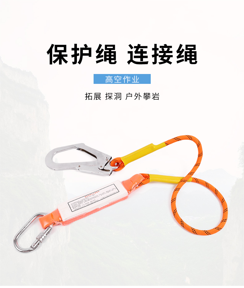 商品名称:援邦 双绳连接绳缓冲包双大钩吸收器高空作业绳保护安全带防坠落缓冲器 YB-GKZY-1SHCB