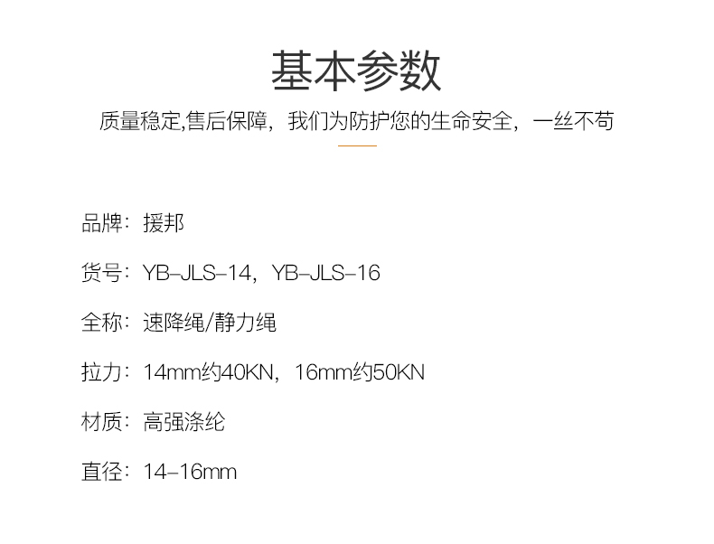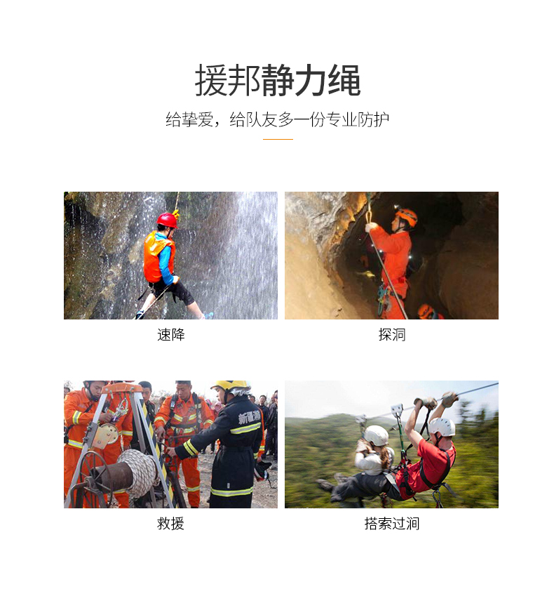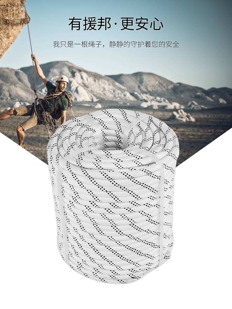 商品名称:援邦 户外登山绳索攀岩绳静力绳速降绳逃生救援绳 高空作业绳主绳 SA-12MM-DBS