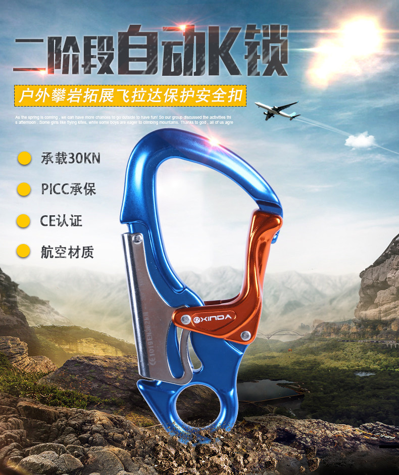 商品名称:欣达 小目钩户外攀岩主锁登山扣速降装备飞拉达拓展高空作业安全钩 XD-Q9652