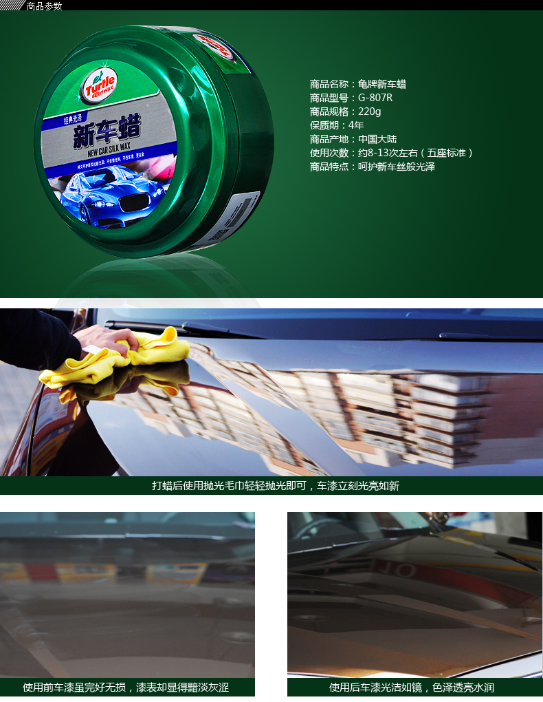 商品名称:龟牌 新车蜡G-807 去污划痕修复汽车蜡 车漆上光防水打蜡腊