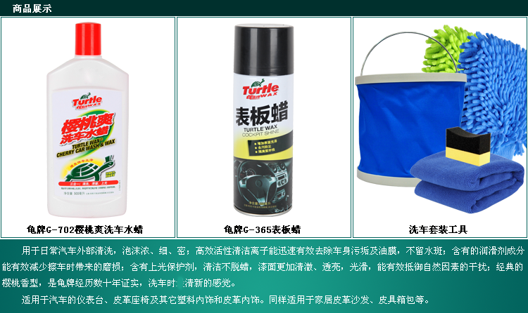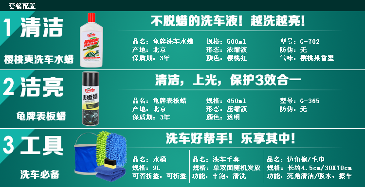 商品名称:龟牌 多功能DIY洗车七件套 TC-702 樱桃爽洗车蜡 套装