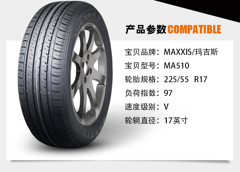 商品名称:玛吉斯 汽车轮胎MA510 225/55R17适配别克新君威新君越迈锐宝君越
