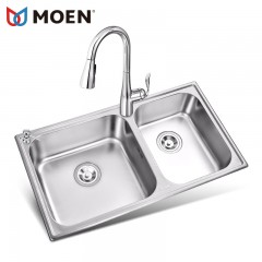 摩恩 304不锈钢加厚厨房水槽双槽套餐水龙头洗菜盆台下洗碗盆水池