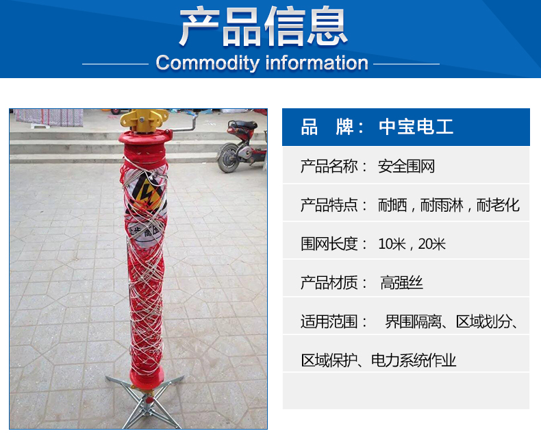 商品名称:中宝 10米20米安全围栏网电力安全围网 隔离网防护网护栏网尼龙网