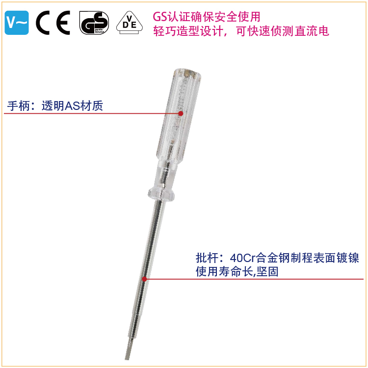 轻巧的造形设计,可以快速侦测(AC)直流电。