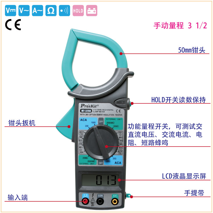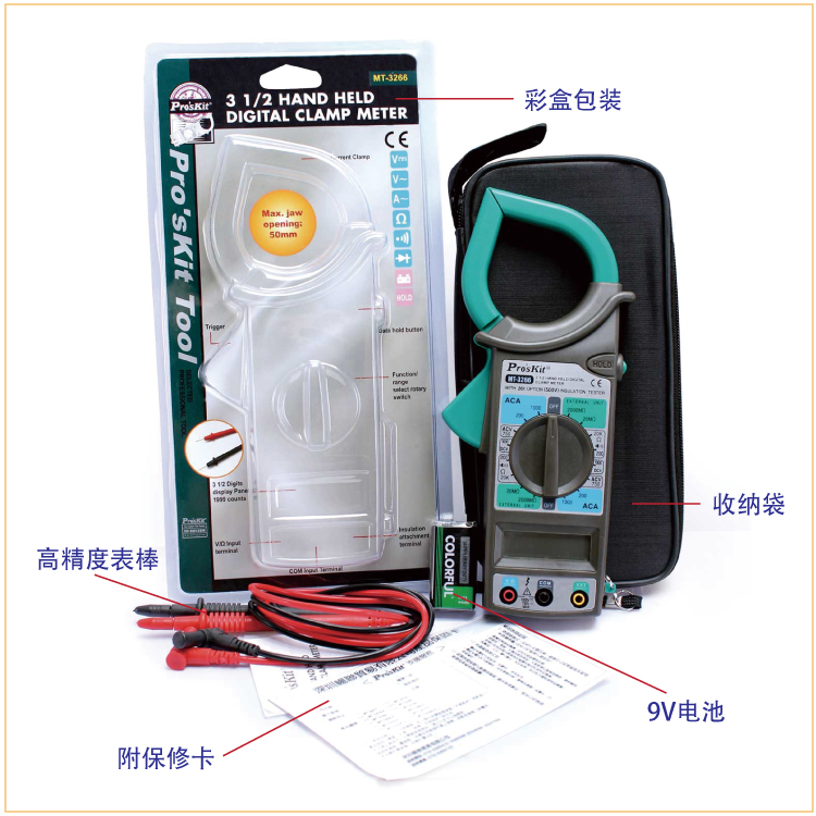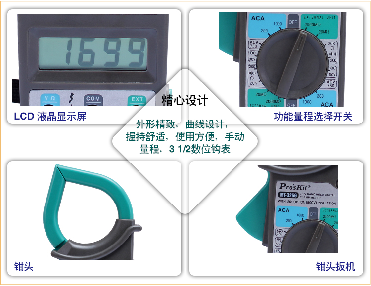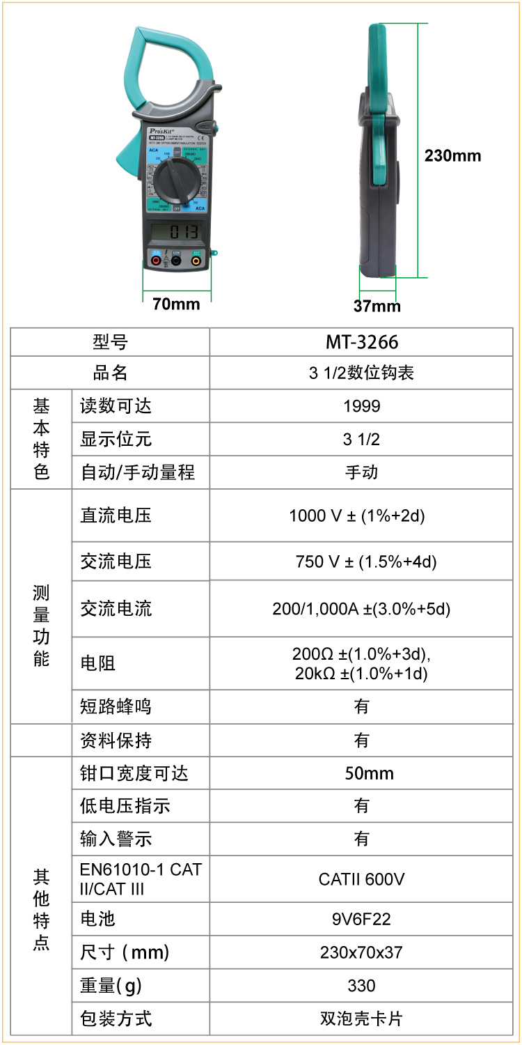 商品名称:宝工 数位钩表 数字钳形万用表 电流表 MT-3266