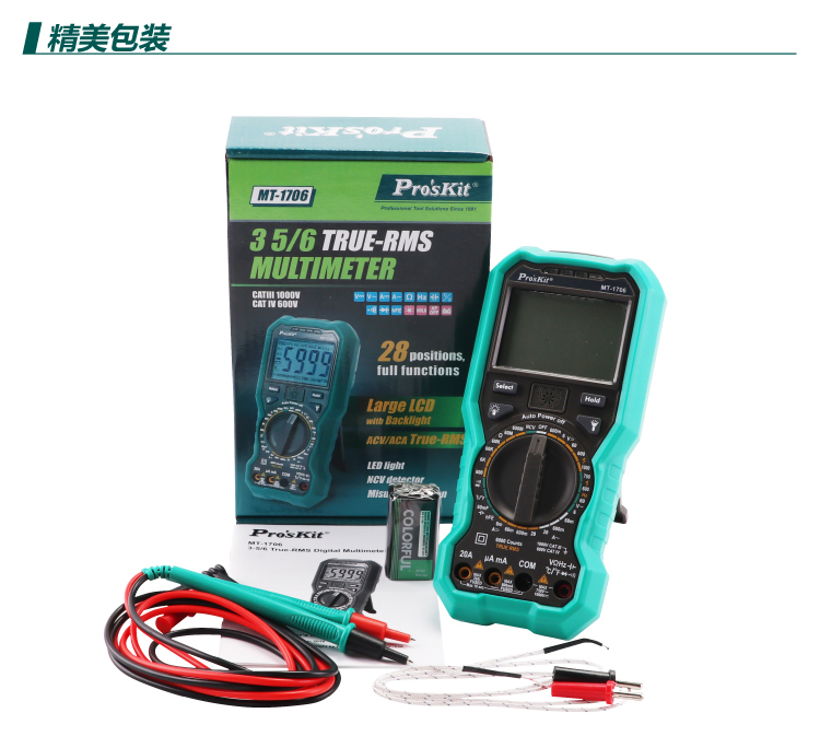 台湾宝工Pro'skit 数字万用表 测试流 直流 数显万用表 MT-1706-C