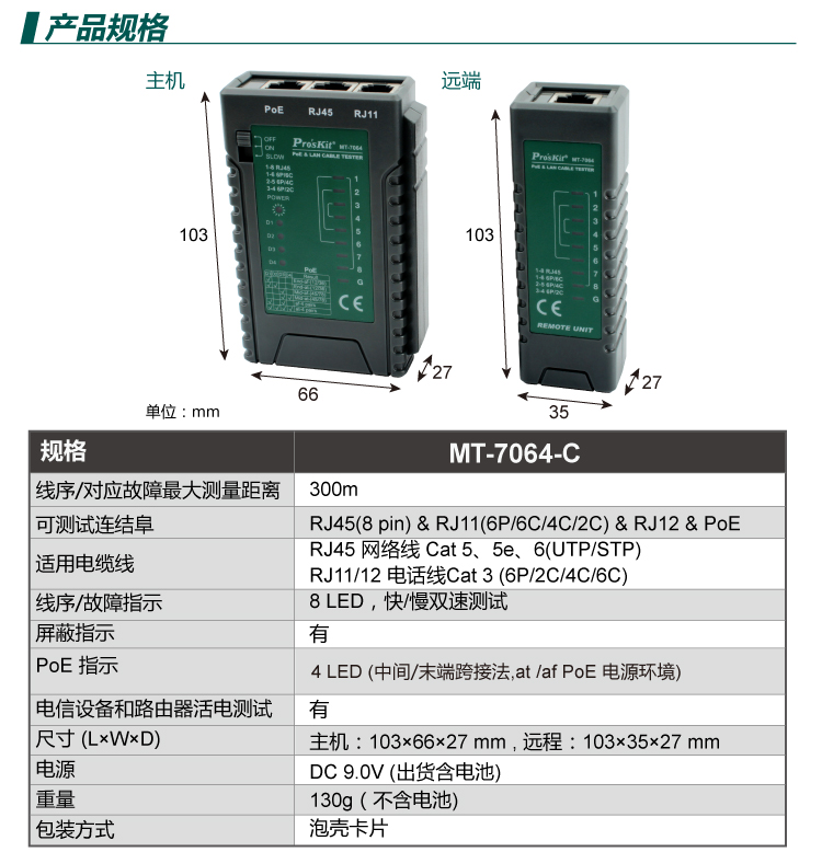 宝工 #39;skit POE及网络测试 视频监控网路测线仪 MT-7064-C