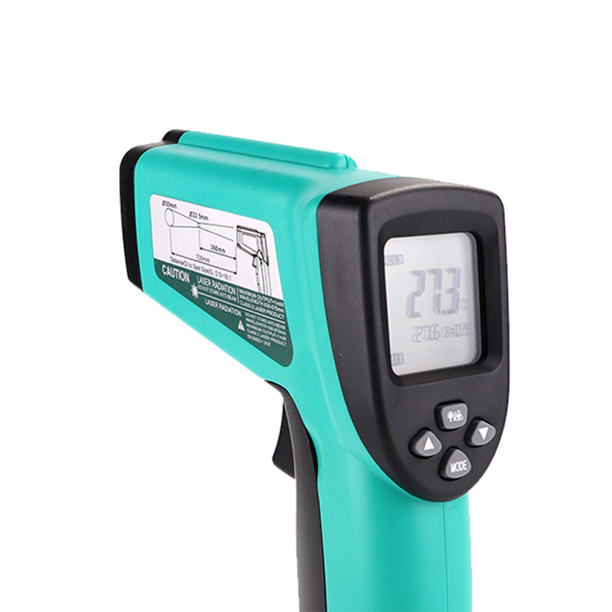 -50 to 580°C (-58°F ~1076°F) 温度测量范围 0.10 -1.00可调发射率 透过发射率的调整设定,在不同材质表面上也能准确测量 距离比例16:1 可在更远距离的地方就能轻松测量出目标物的温度