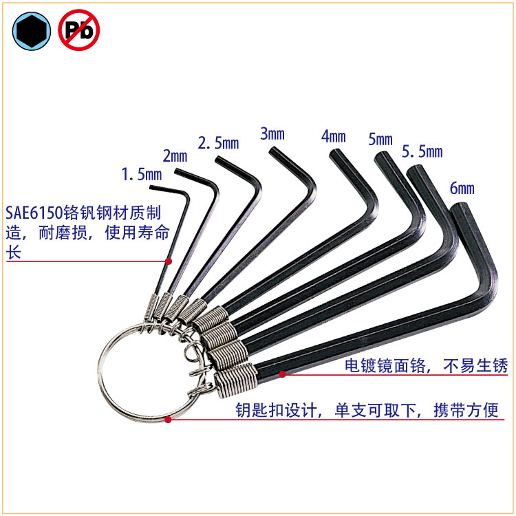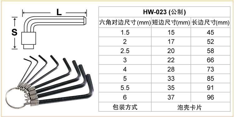 HW-023 镀铬内六角扳手组(8支组)