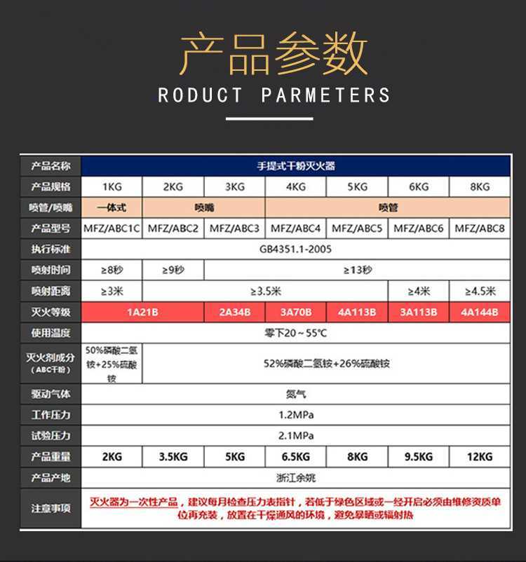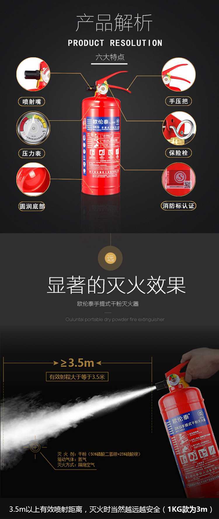 商品名称:欧伦泰 灭火器 车载车用家用 2KG手提式干粉灭火器 消防器材 MFZA