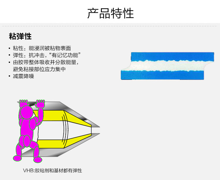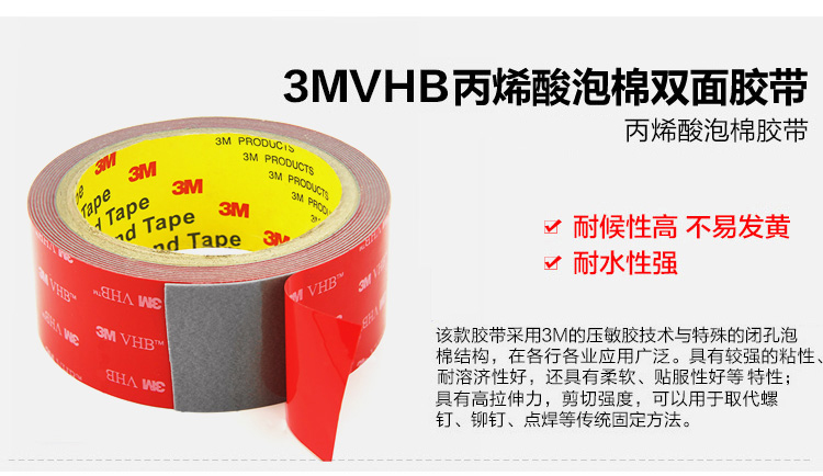 商品名称:3M VHB无痕泡棉双面胶带 耐高温 汽车粘胶 厚度0.8毫米 5608A-GF