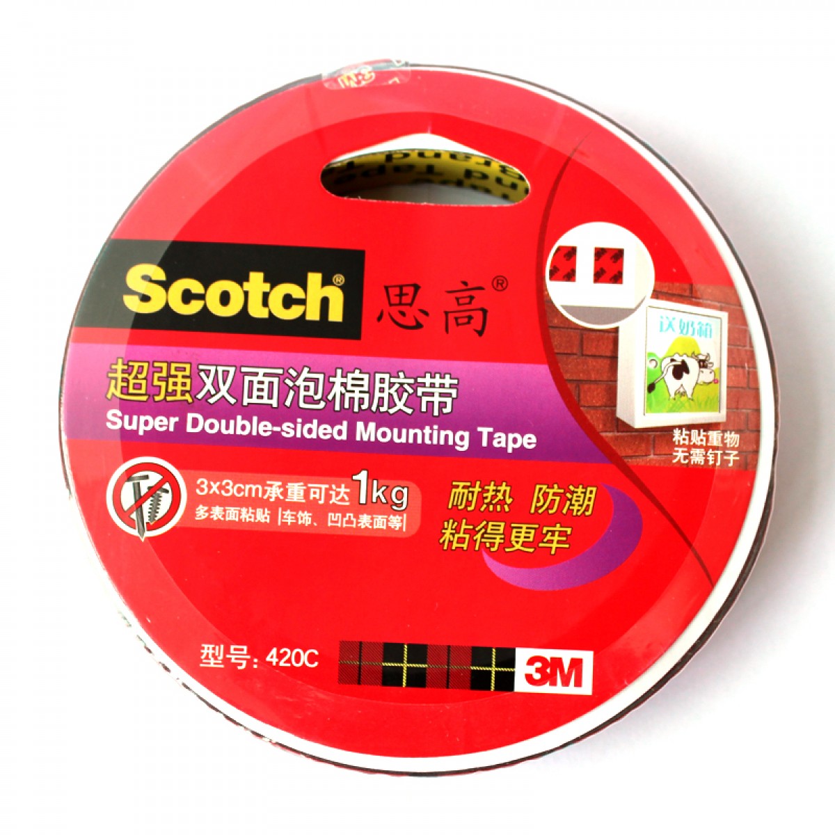 商品名称:3M Scotch思高胶带 汽车固定粘胶 泡棉双面胶 厚0.8毫米 420C
