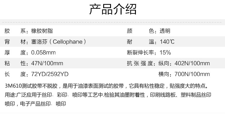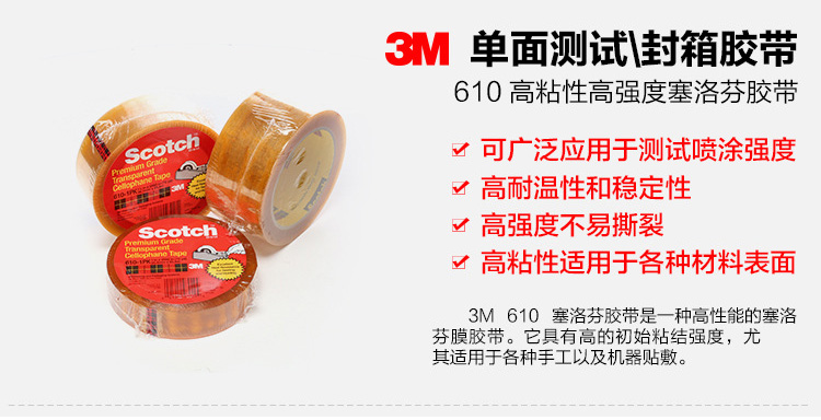 商品名称:3M Scotch思高胶带 汽车固定粘胶 测试单面胶 厚0.058毫米 610-1PK