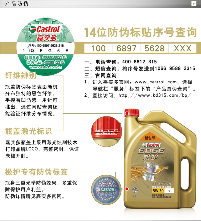 商品名称:嘉实多 极护钛流体全合成机油润滑油 SN 5W-30 4L