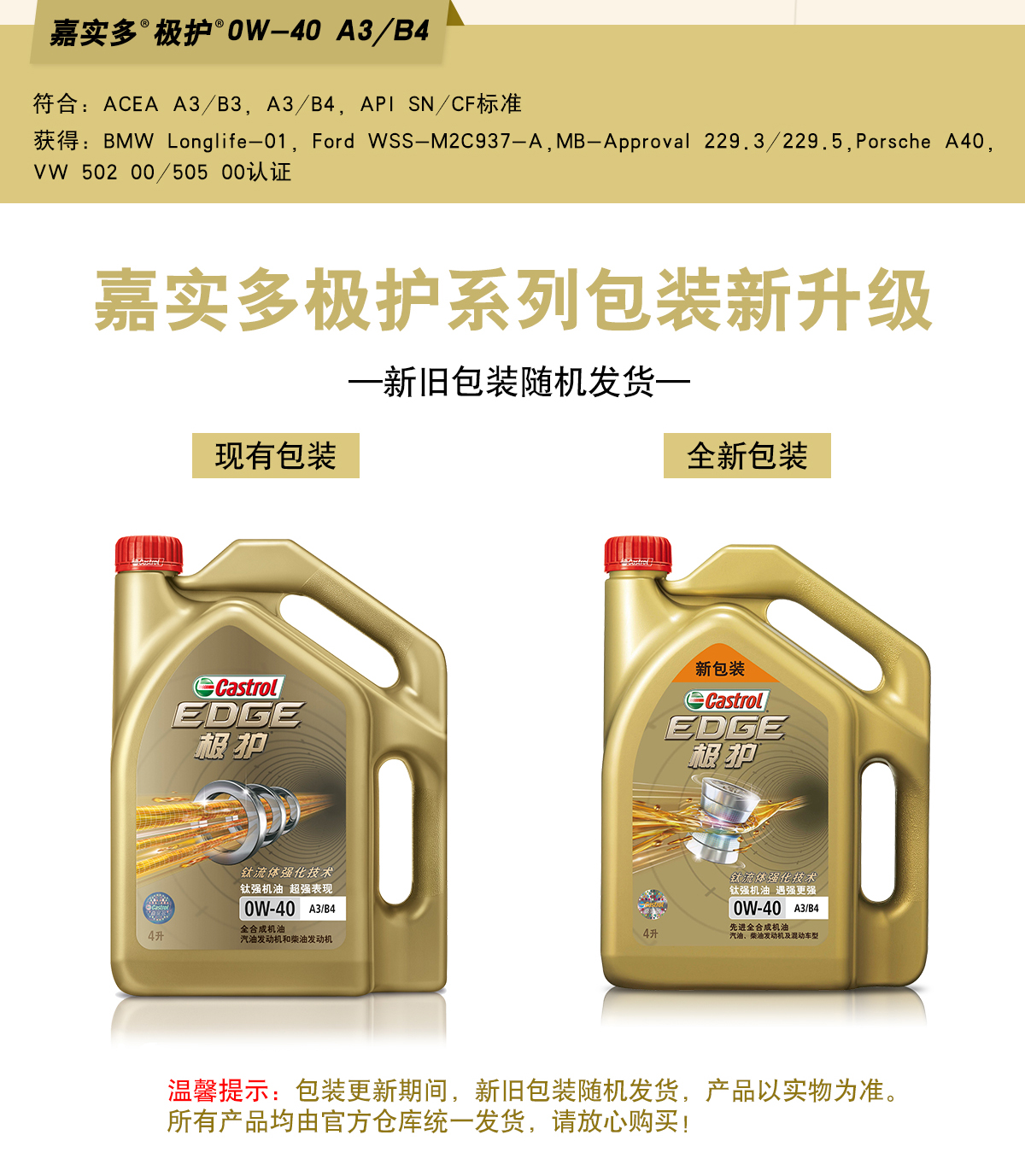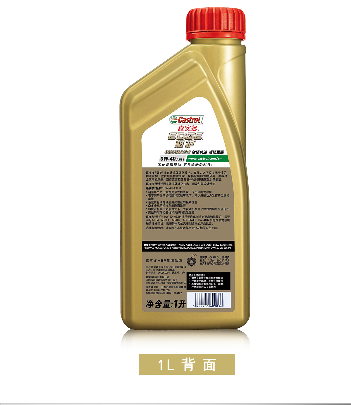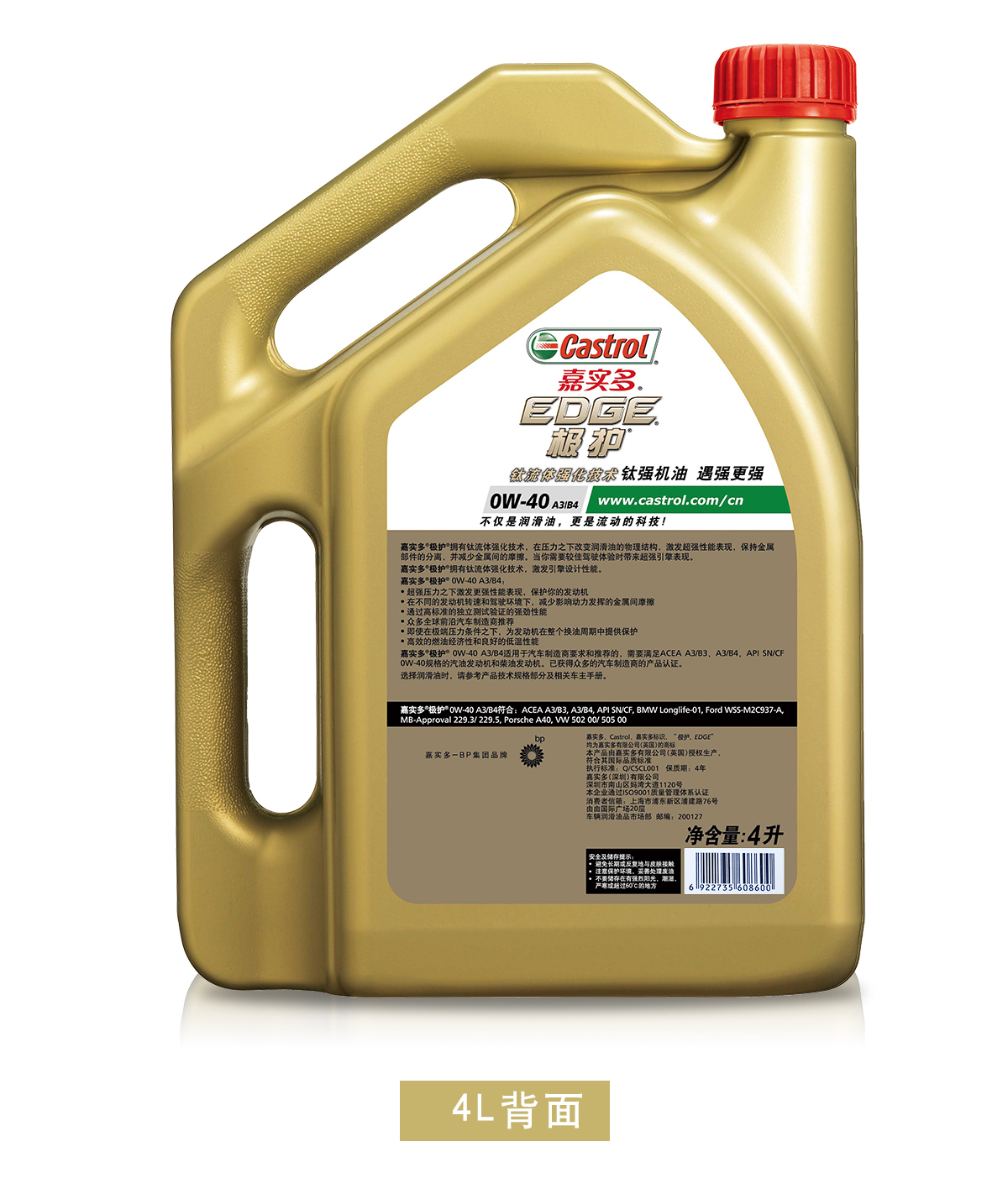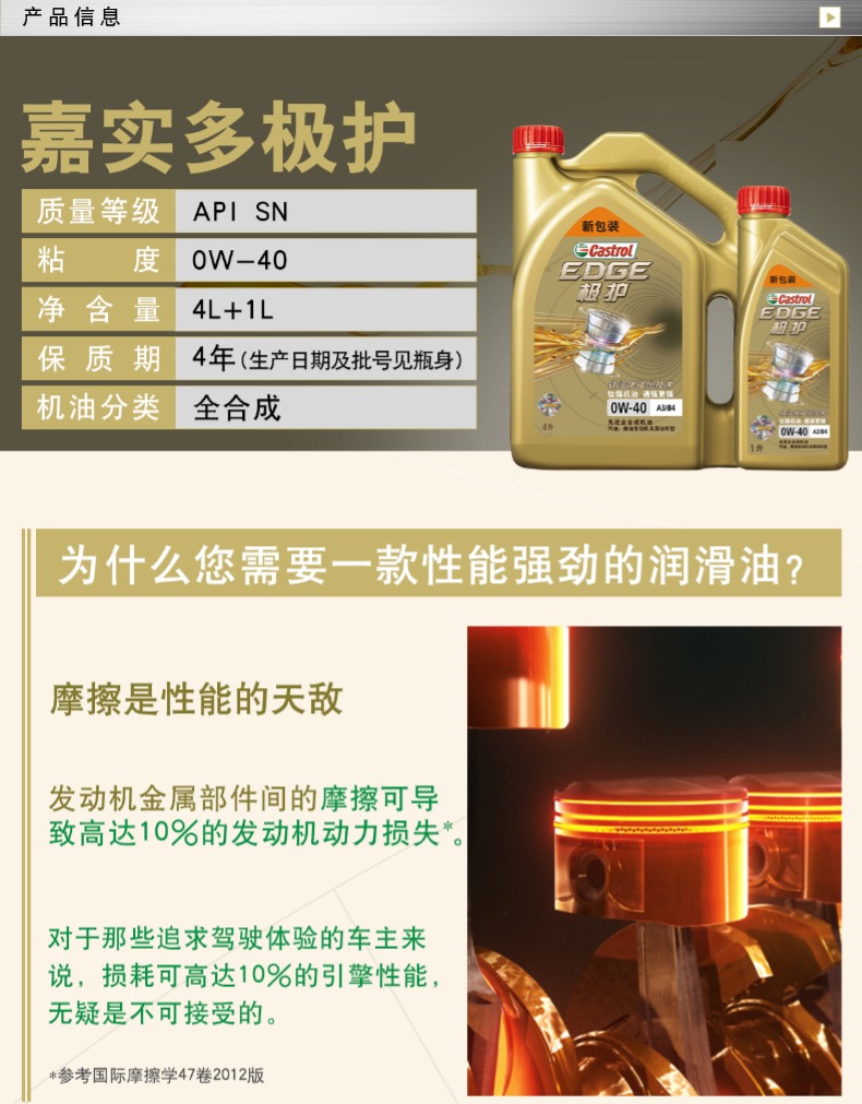 商品名称:嘉实多 极护钛流体全合成机油润滑油SN 0W40 4L+1L