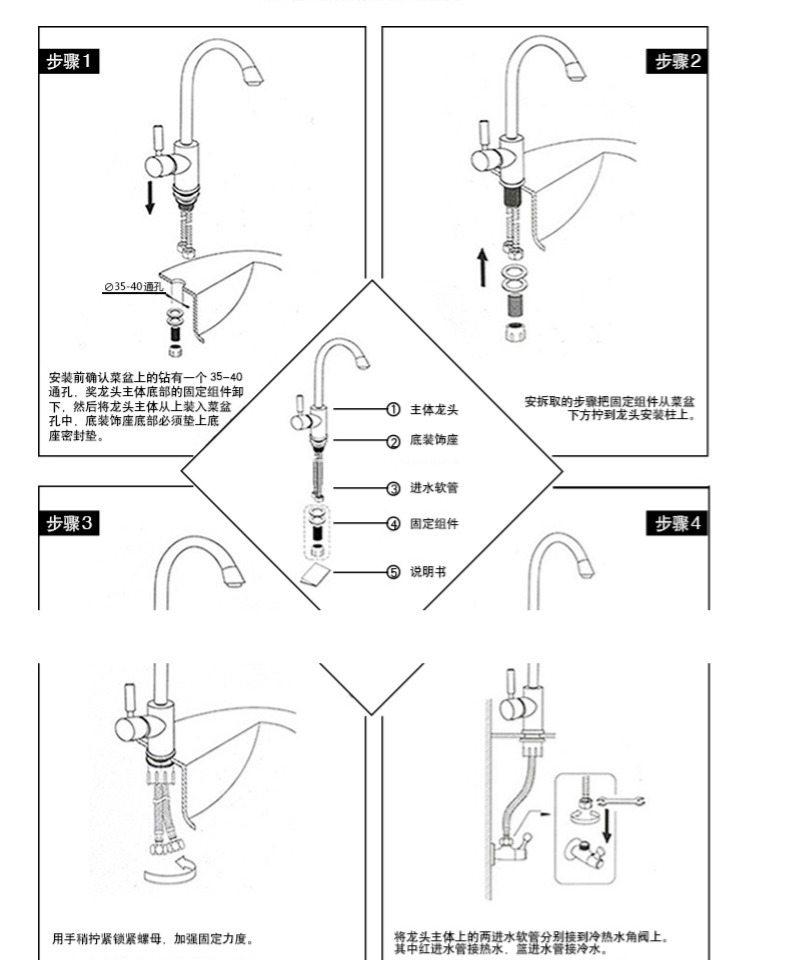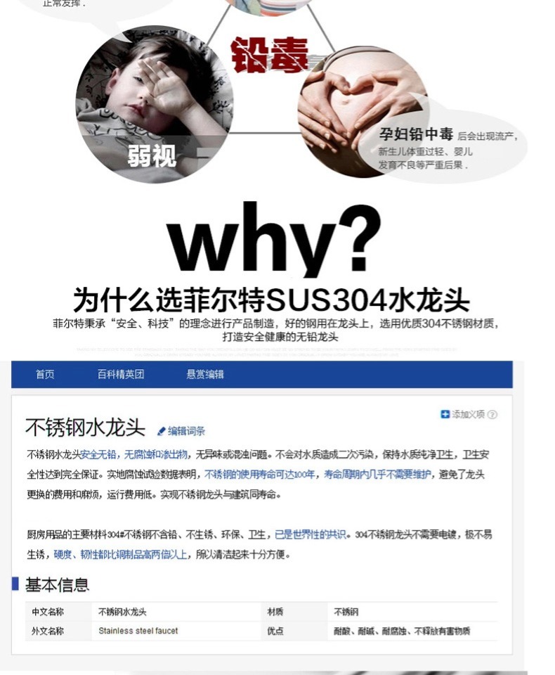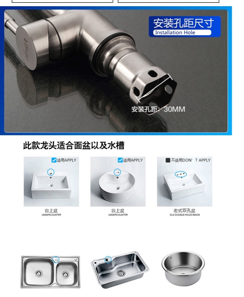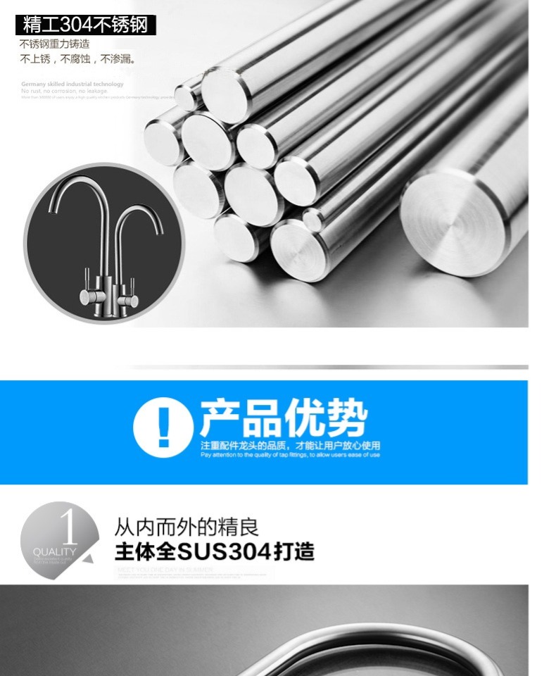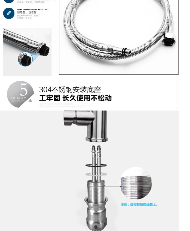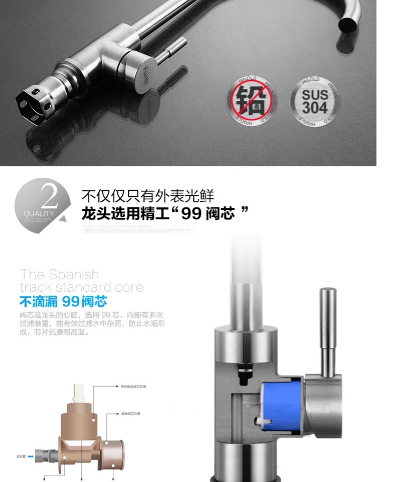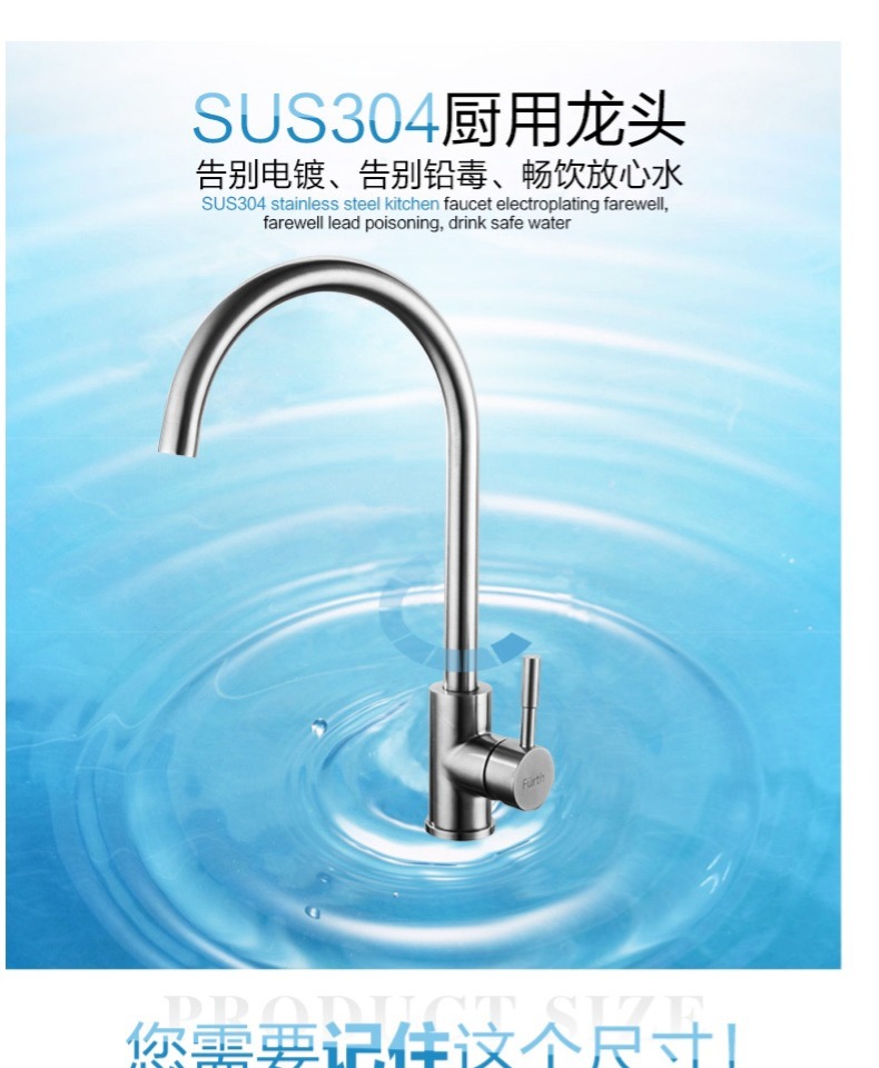 商品名称:菲尔特 厨房龙头冷热水单把单孔304不锈钢环保无铅360度旋转防漏
