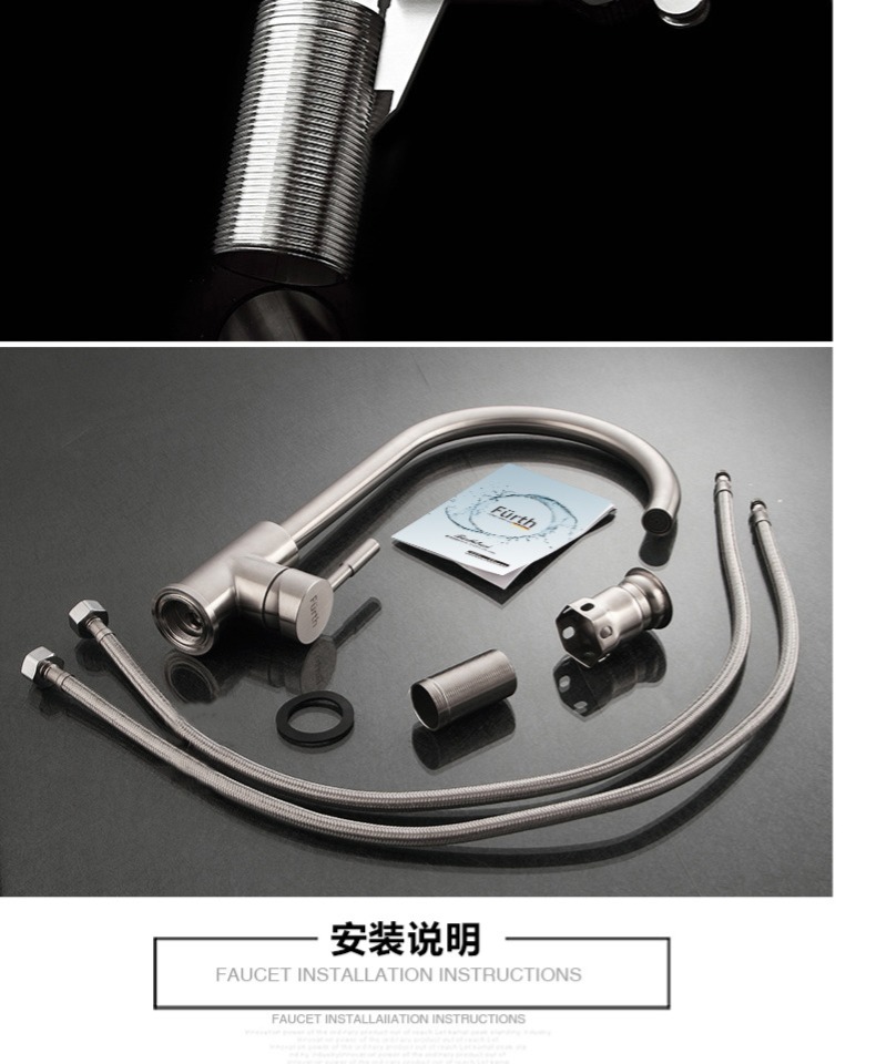 菲尔特 厨房龙头冷热水单把单孔304不锈钢环保无铅360度旋转防漏