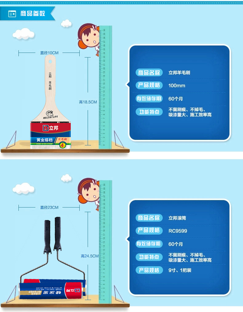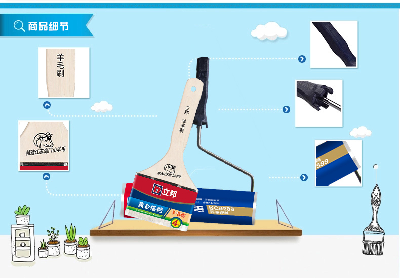 商品名称:立邦 涂刷礼包油漆涂料辅助工具 滚筒9寸 弹性羊毛刷4寸