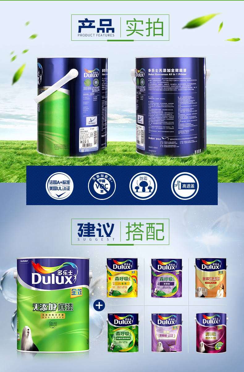 商品名称:多乐士漆 无添加全效底漆5L单桶 乳胶漆涂料内墙漆白色墙面漆 ICI0246