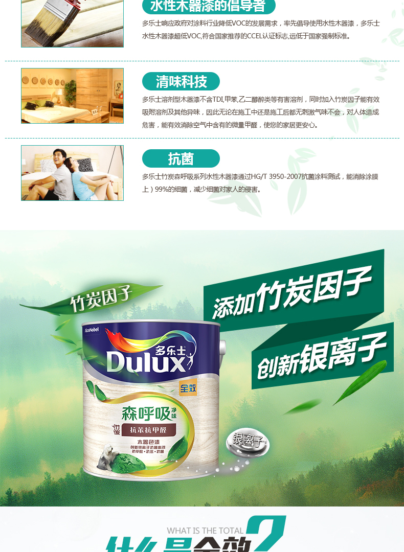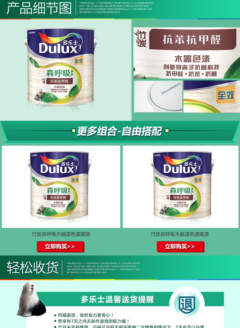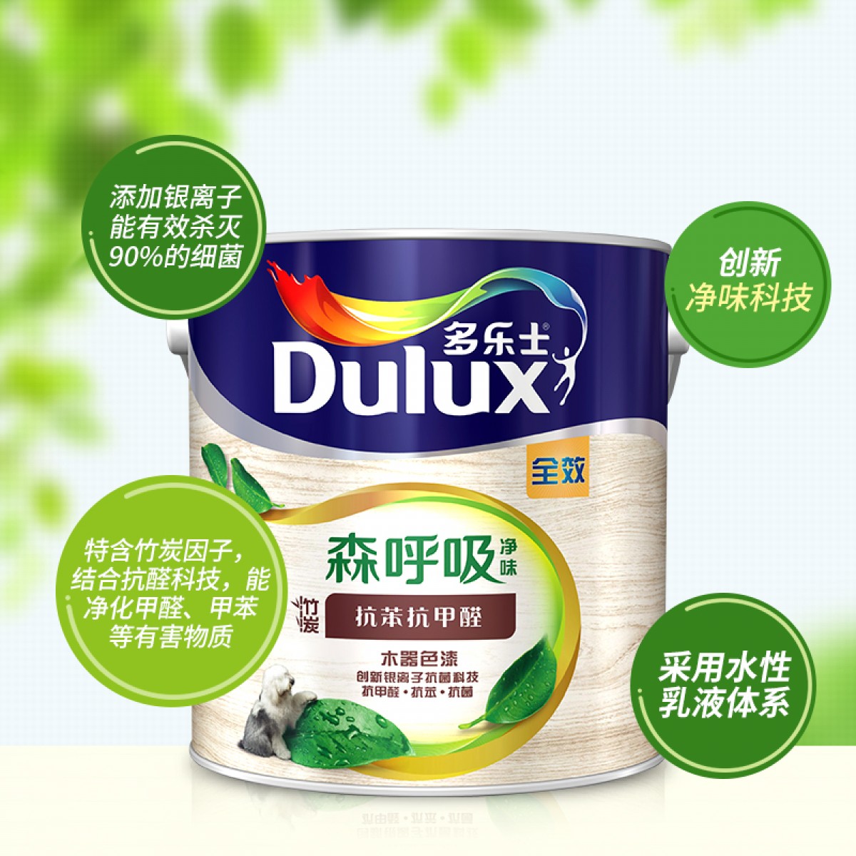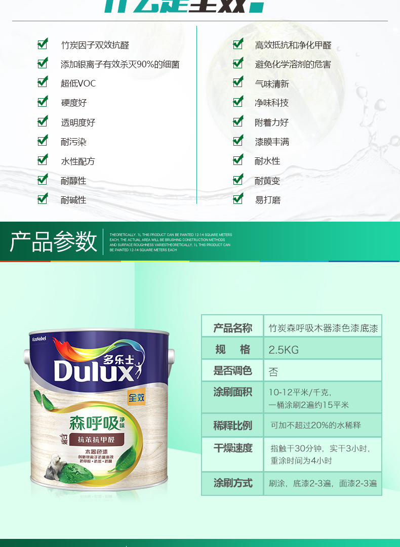 商品名称:多乐士漆 森呼吸净味竹炭抗苯抗甲醛全效木器色漆底漆油漆涂料 ICI0227