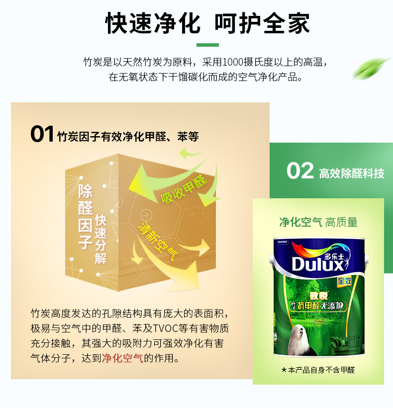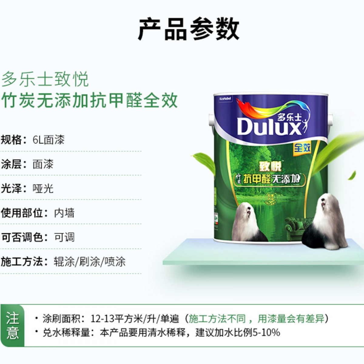 商品名称:多乐士漆 致悦竹炭抗甲醛全效6L单桶 内墙乳胶漆墙面漆涂料 ICI0181-5