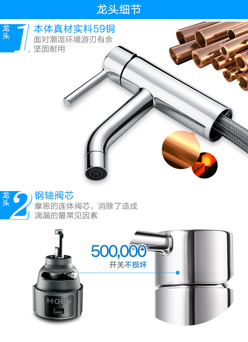 摩恩 水龙头单孔台下盆龙头面盆洗手冷热水龙头本体铜 90113 14121