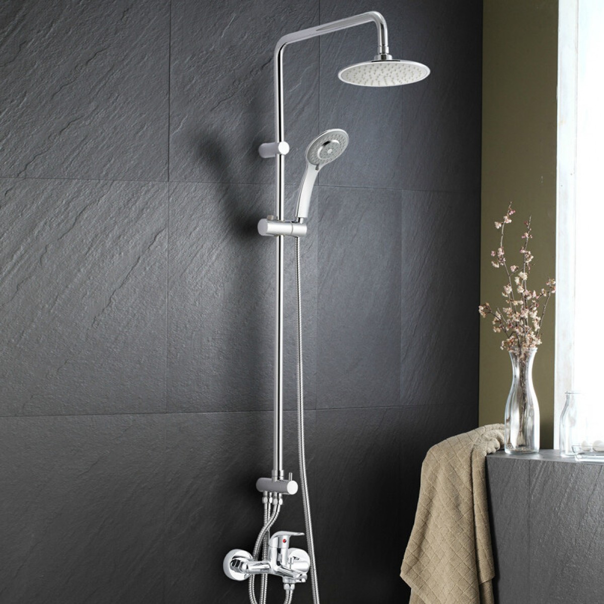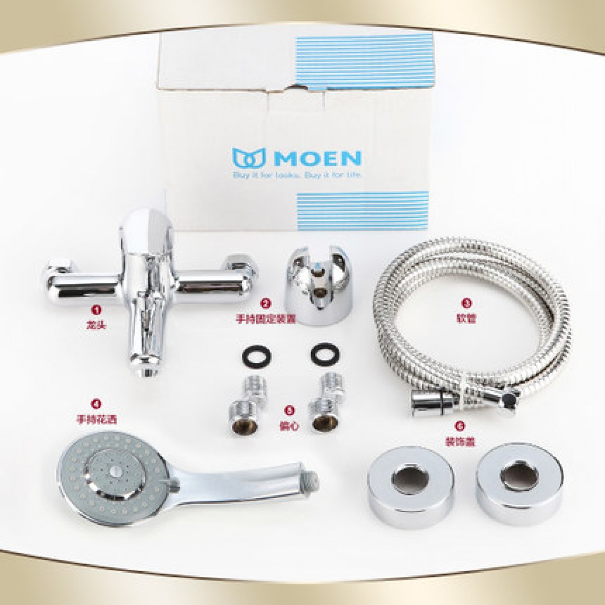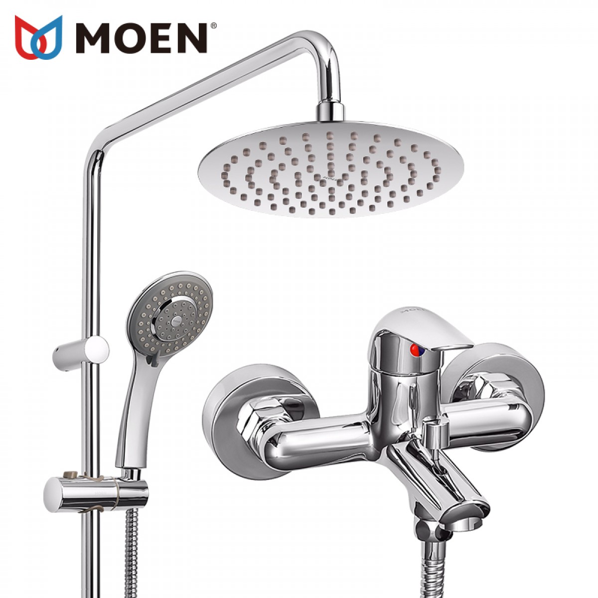 摩恩 花洒套装挂墙式全铜冷热淋浴花洒浴室淋雨增压顶喷头 12333EC