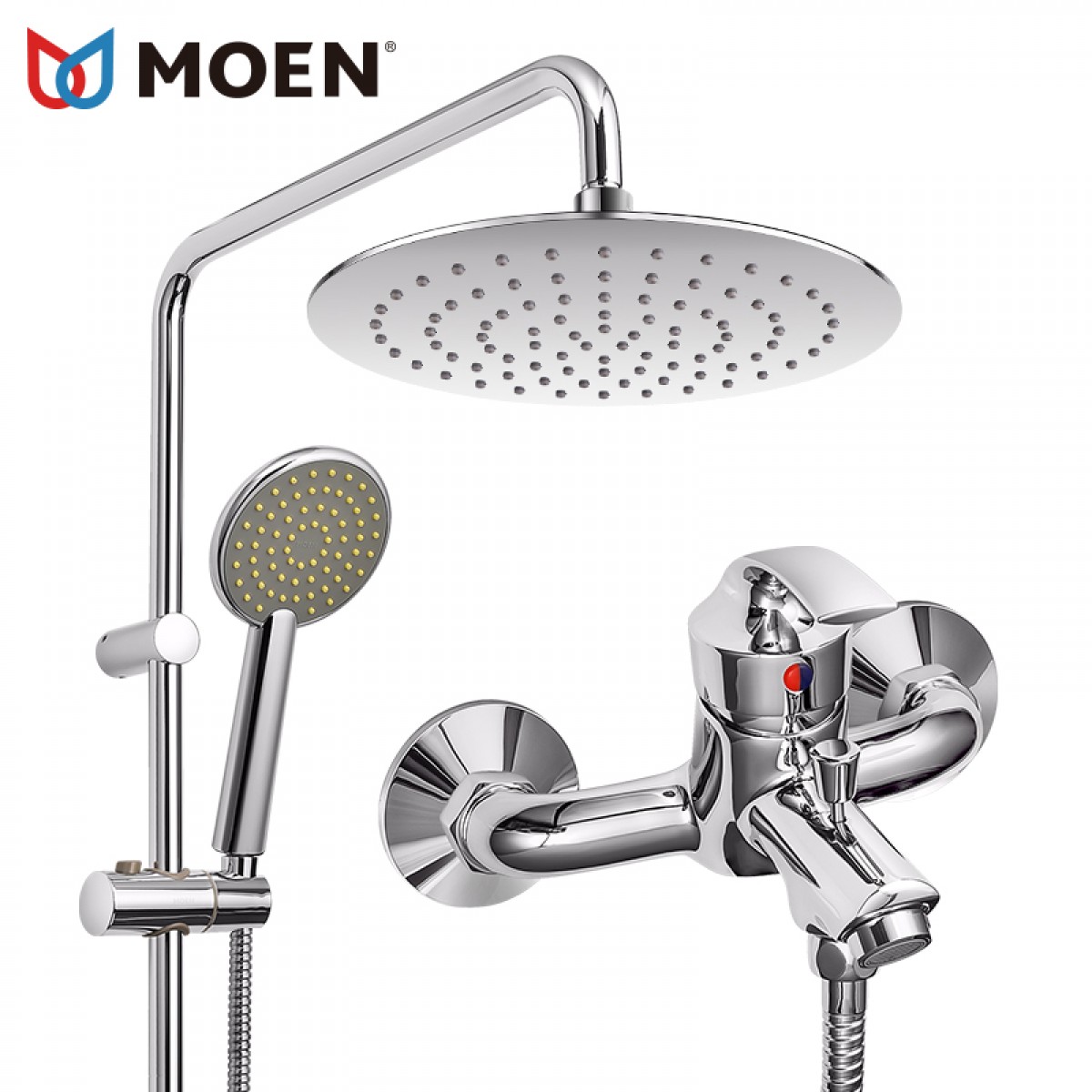 摩恩 花洒套装全铜淋浴龙头冷热挂墙式浴室沐浴大顶喷手持 93132EC