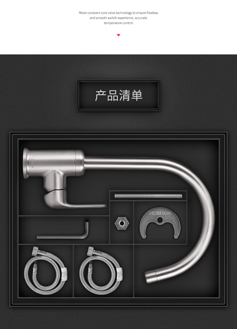 摩恩 水龙头冷热全铜可旋转防指纹厨房水池水槽水龙头 60401srs