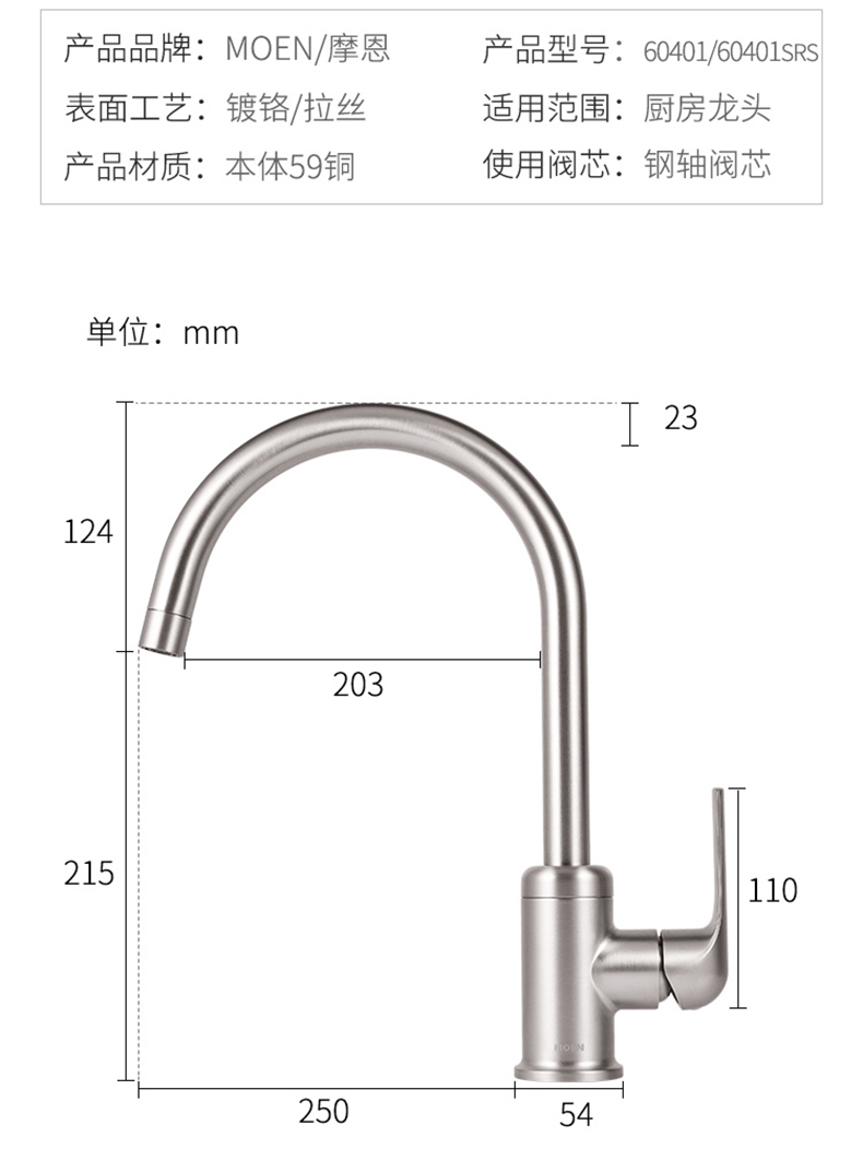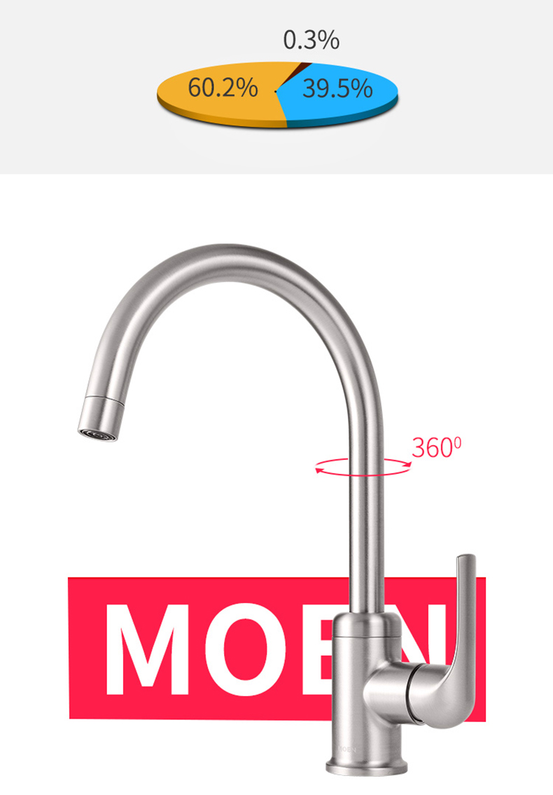 商品名称:摩恩 水龙头冷热全铜可旋转防指纹厨房水池水槽水龙头 60401srs