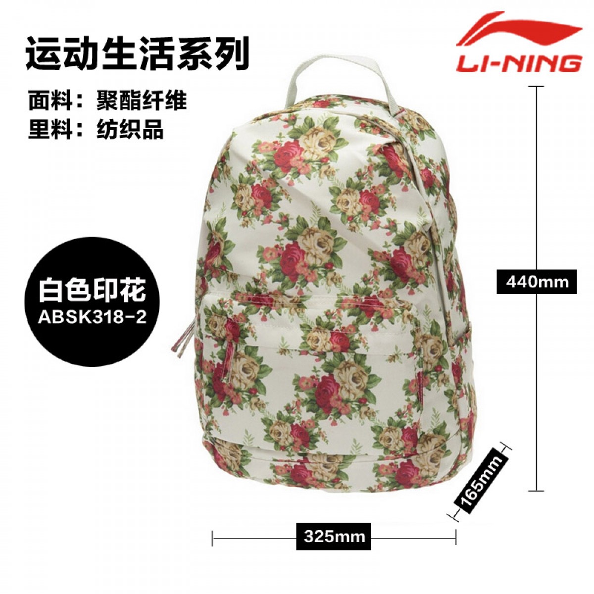 商品名称:李宁 背包时尚印花双肩包女式运动包 ABSK318
