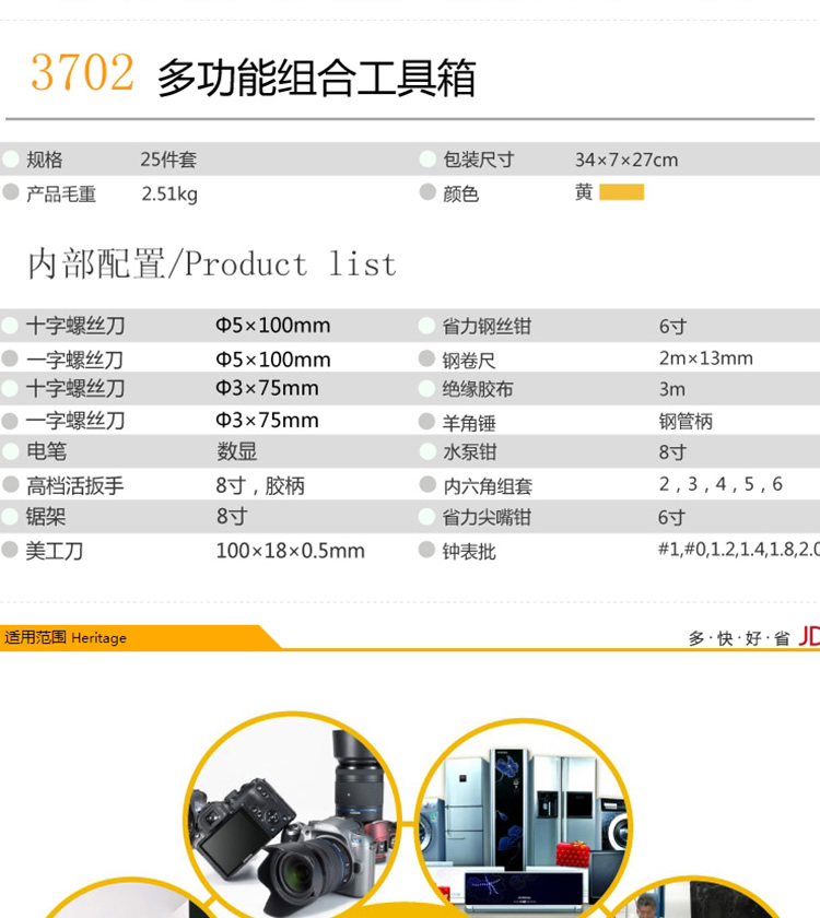 商品名称:得力 组合工具 办公家用 25件套工具箱 3702