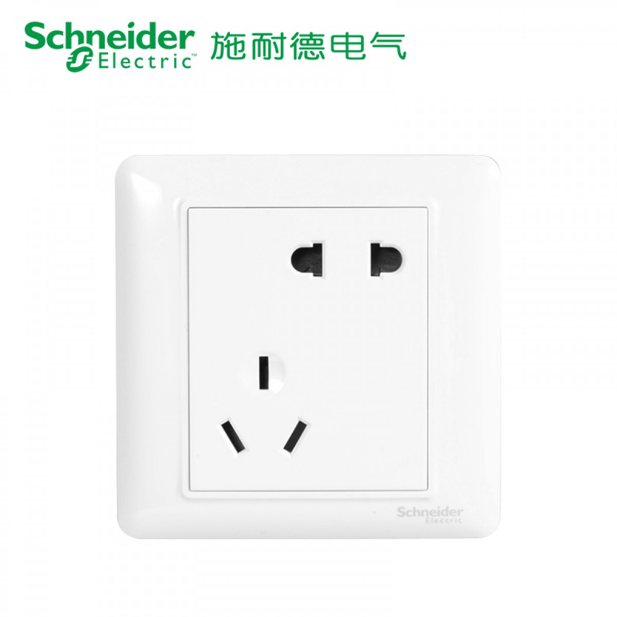 商品名称:施耐德 开关插座睿意白色 10A斜五孔插座 二三插电源开关插座面板