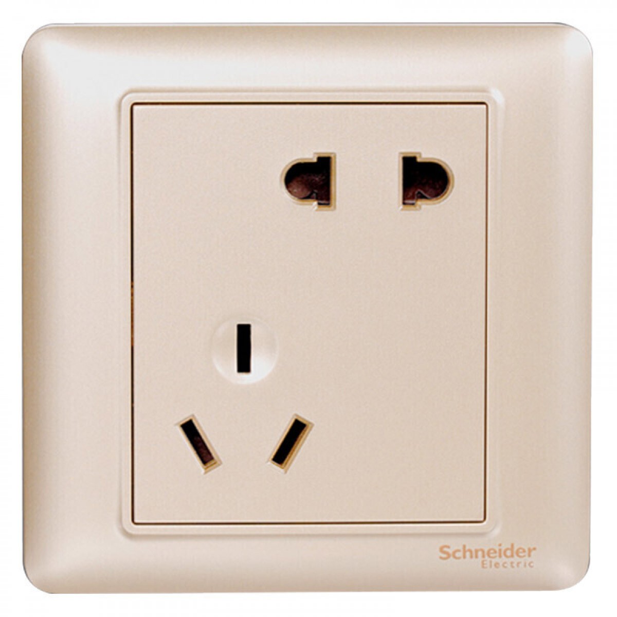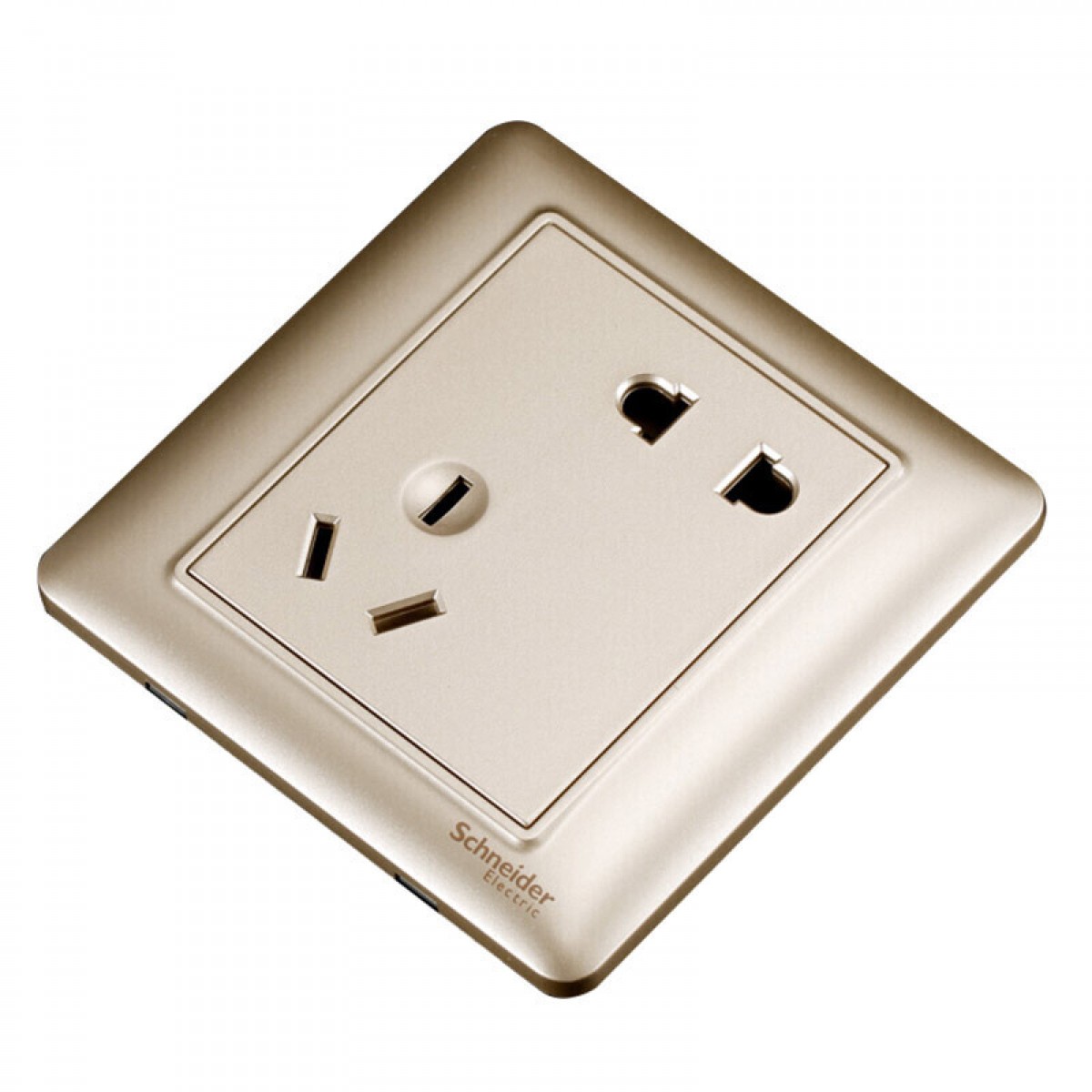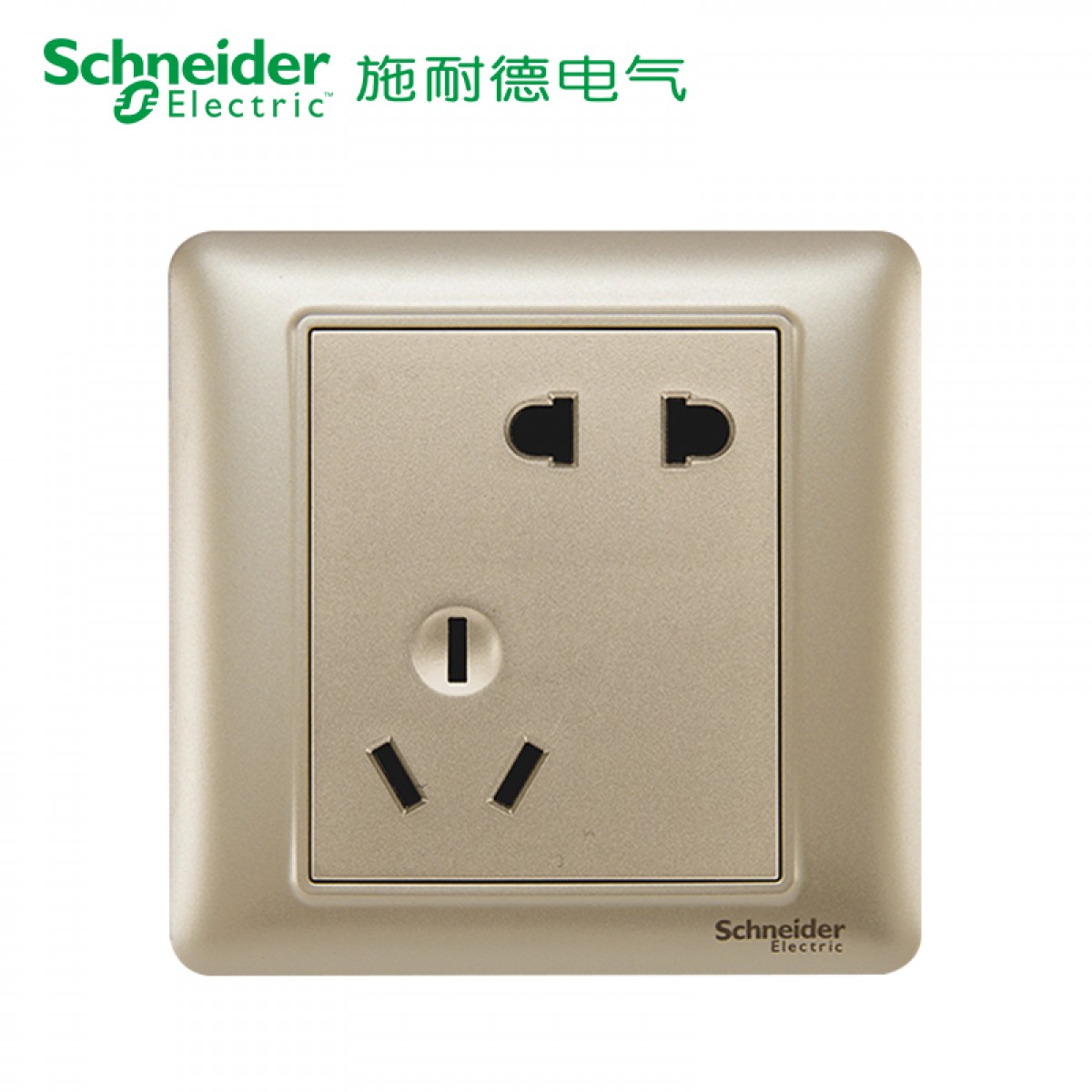 商品名称:施耐德 开关插座 睿意香槟金 错位五孔 面板墙壁二三5孔插座电源