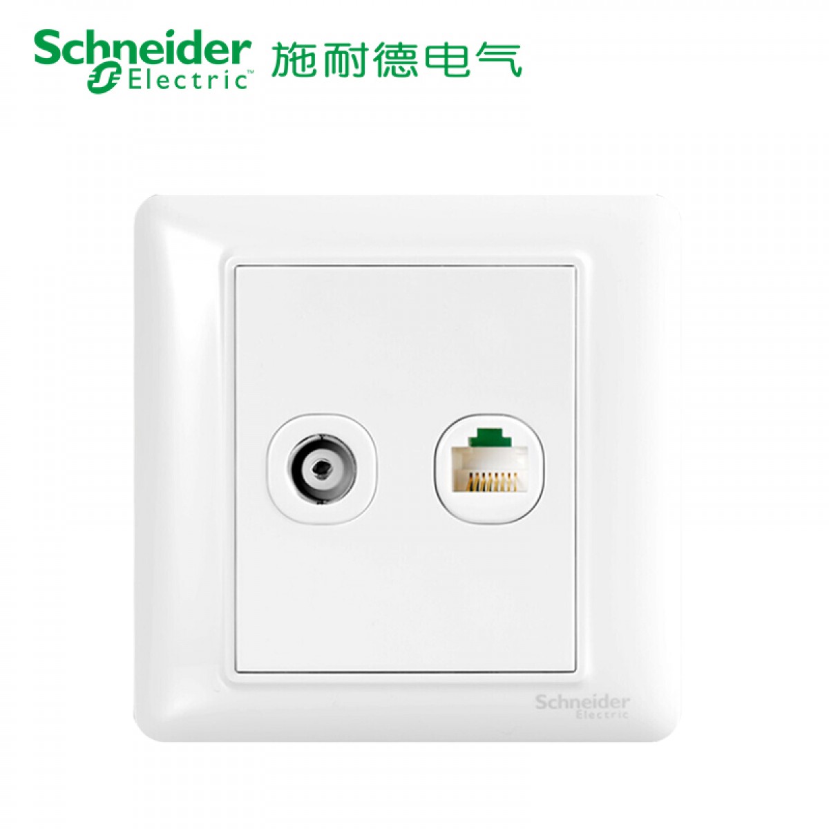 施耐德 电气 电视电脑插座 86型家用墙壁暗装 闭路面板 睿意白色