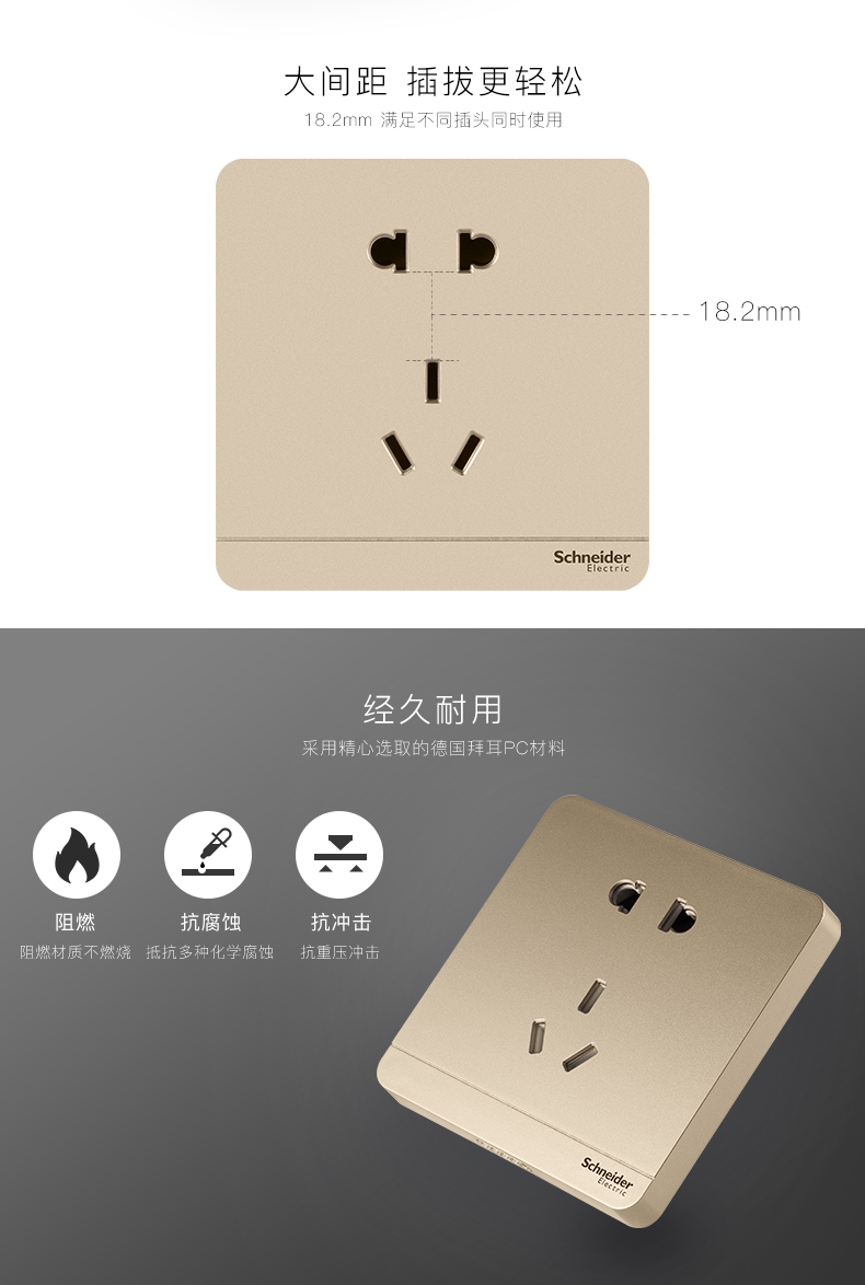 商品名称:施耐德 开关插座绎尚金色 正五孔插座 暗装二三插电源开关插座面板