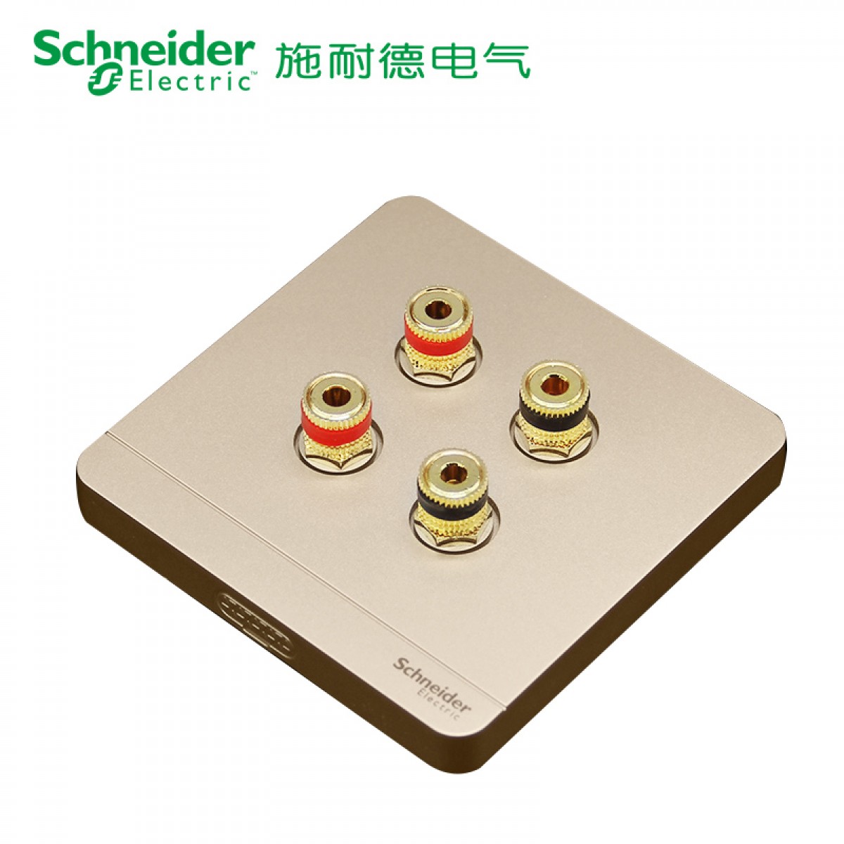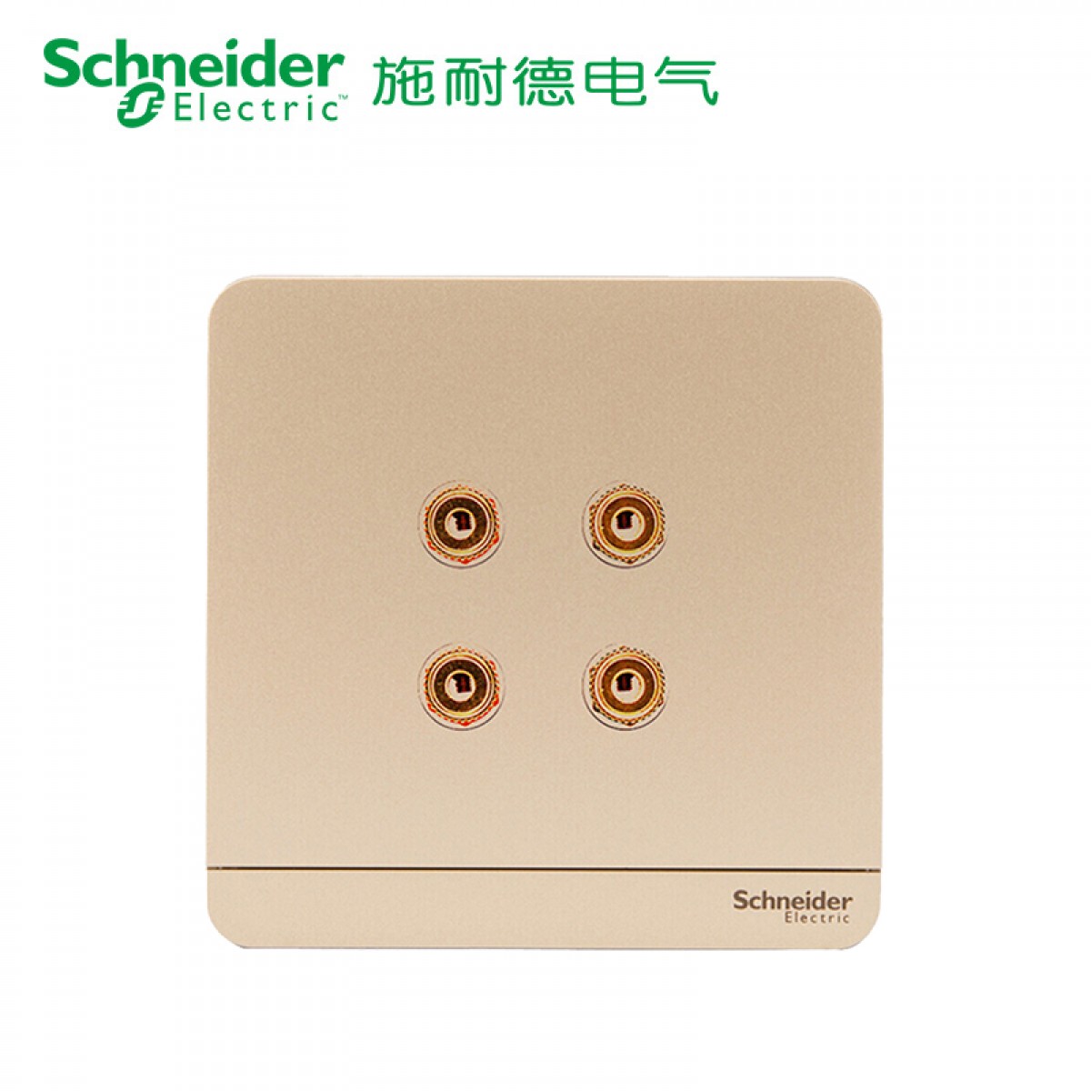 施耐德 双联四孔音响插座 音箱弱电面板 绎尚金