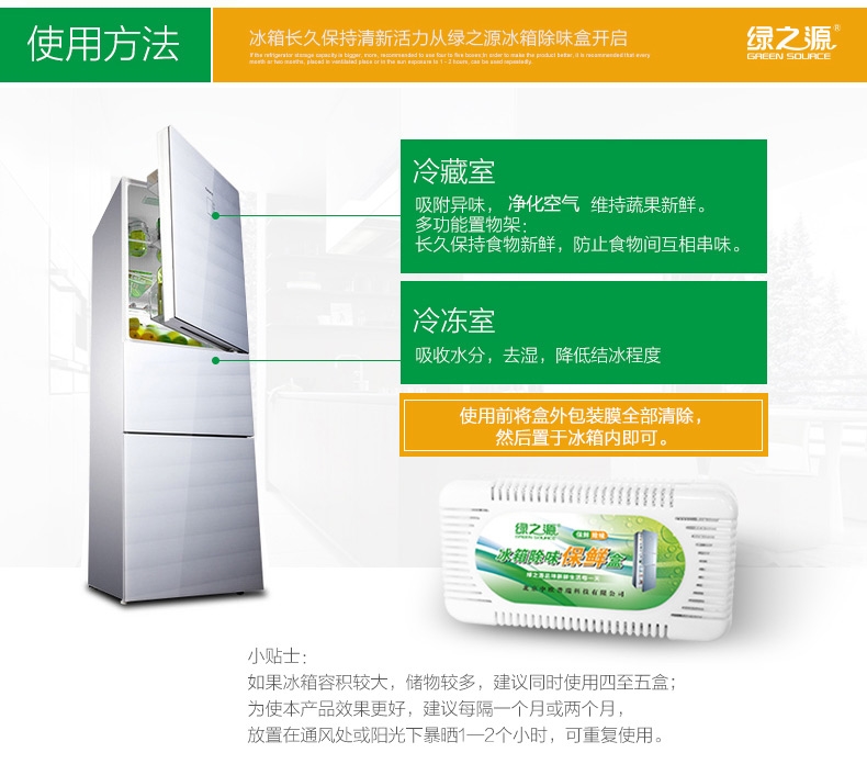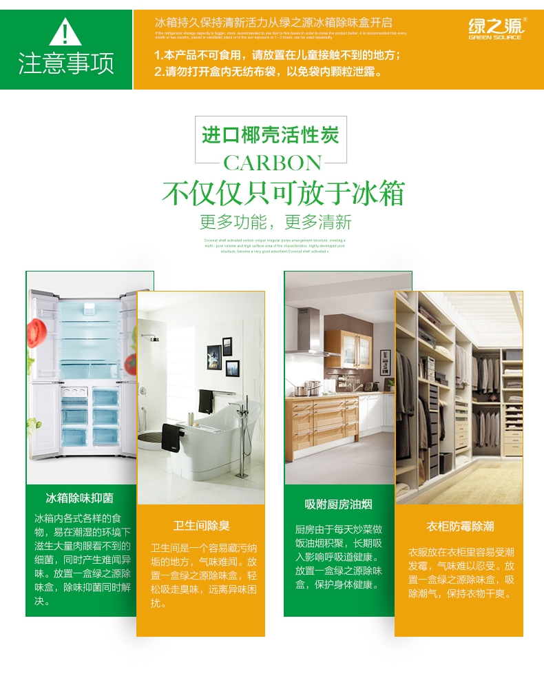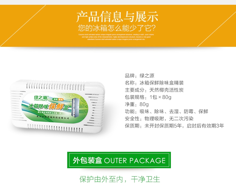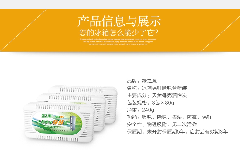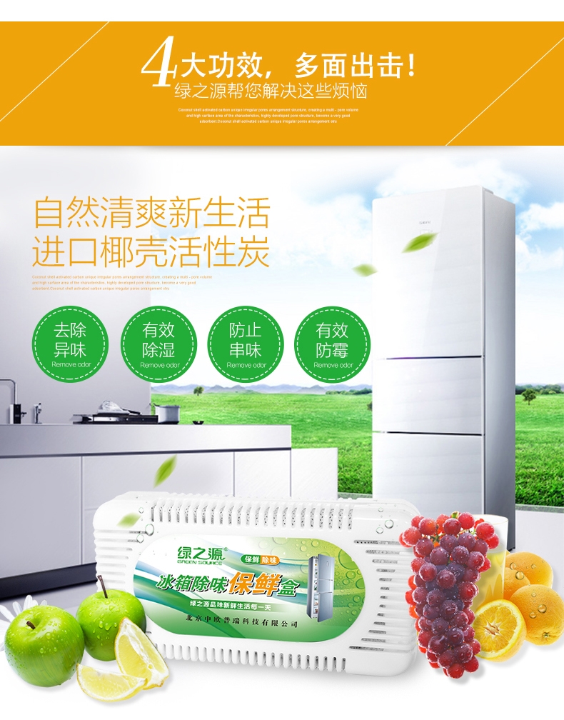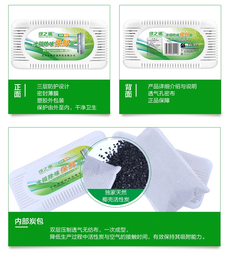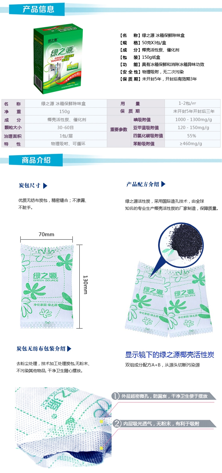 商品名称:绿之源 冰箱专用净味剂去除冰箱异味活性炭碳包 冰箱保鲜除味盒