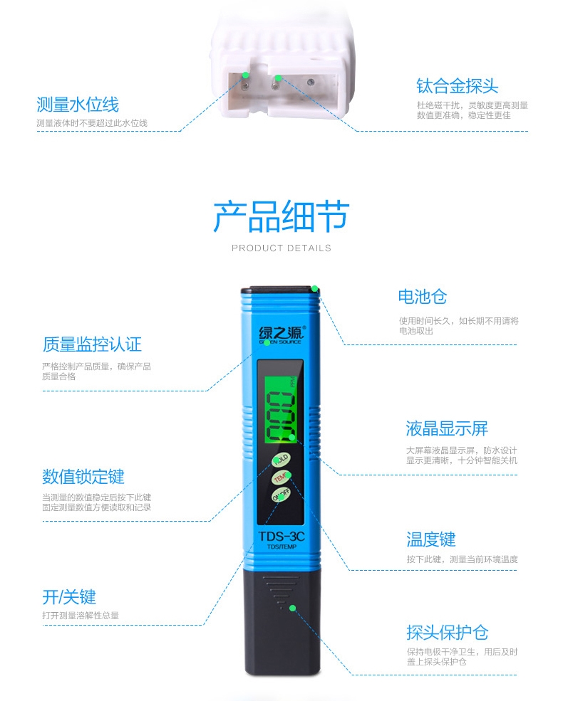 商品名称:绿之源 水质检测笔水质监测水质检测检测笔准确检测家中水质纯度