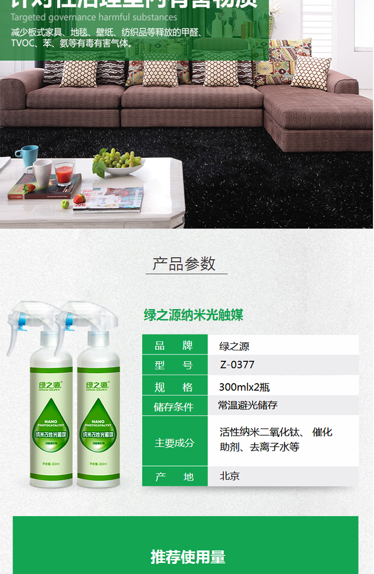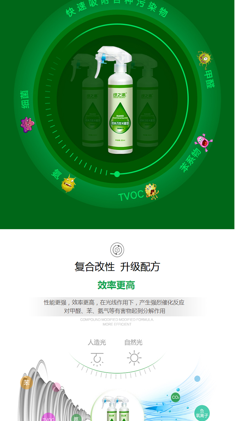 商品名称:绿之源 纳米改性光触媒甲醛清除剂除苯喷雾剂家用母婴新房装修家