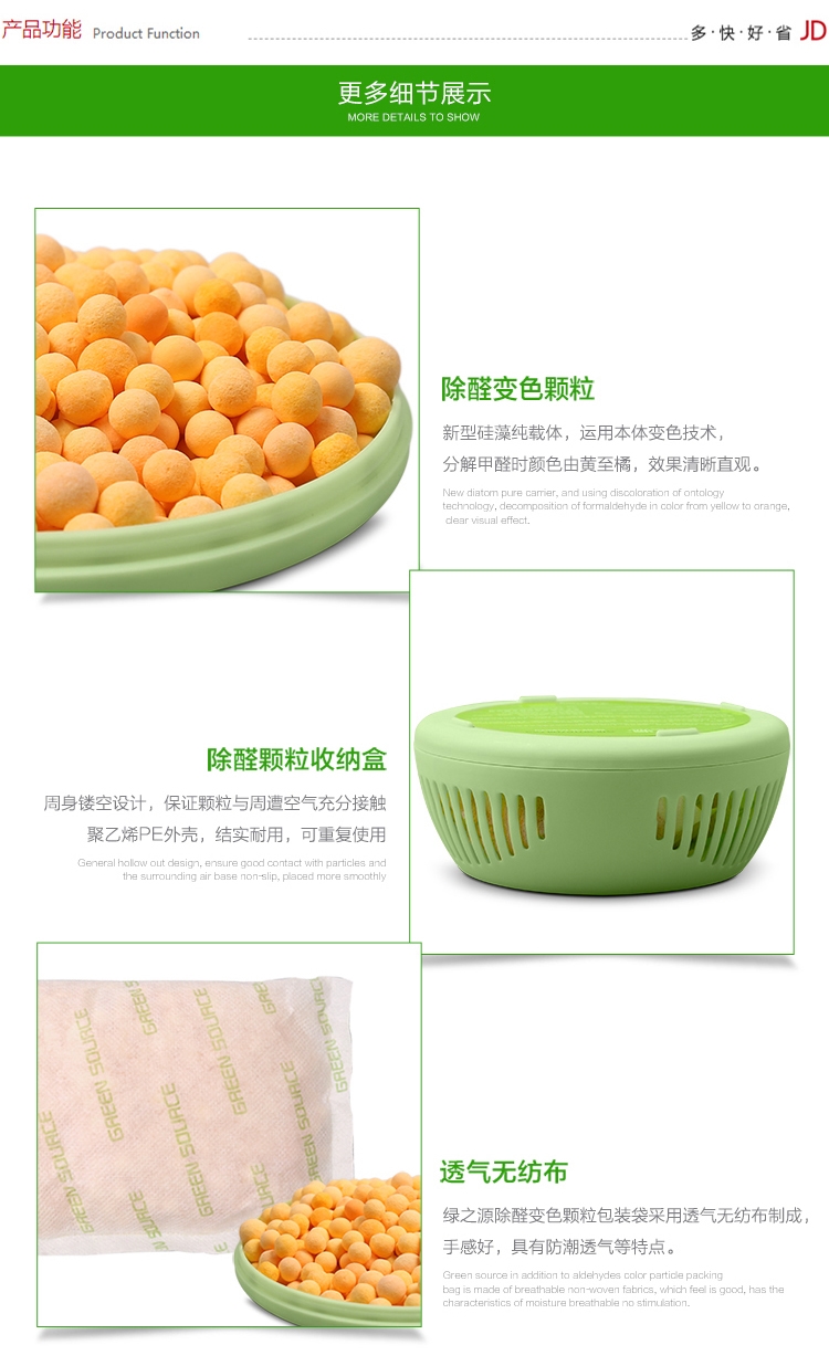 商品名称:绿之源 除醛变色颗粒 硅藻泥新房装修除甲醛清除剂汽车除味去甲醛